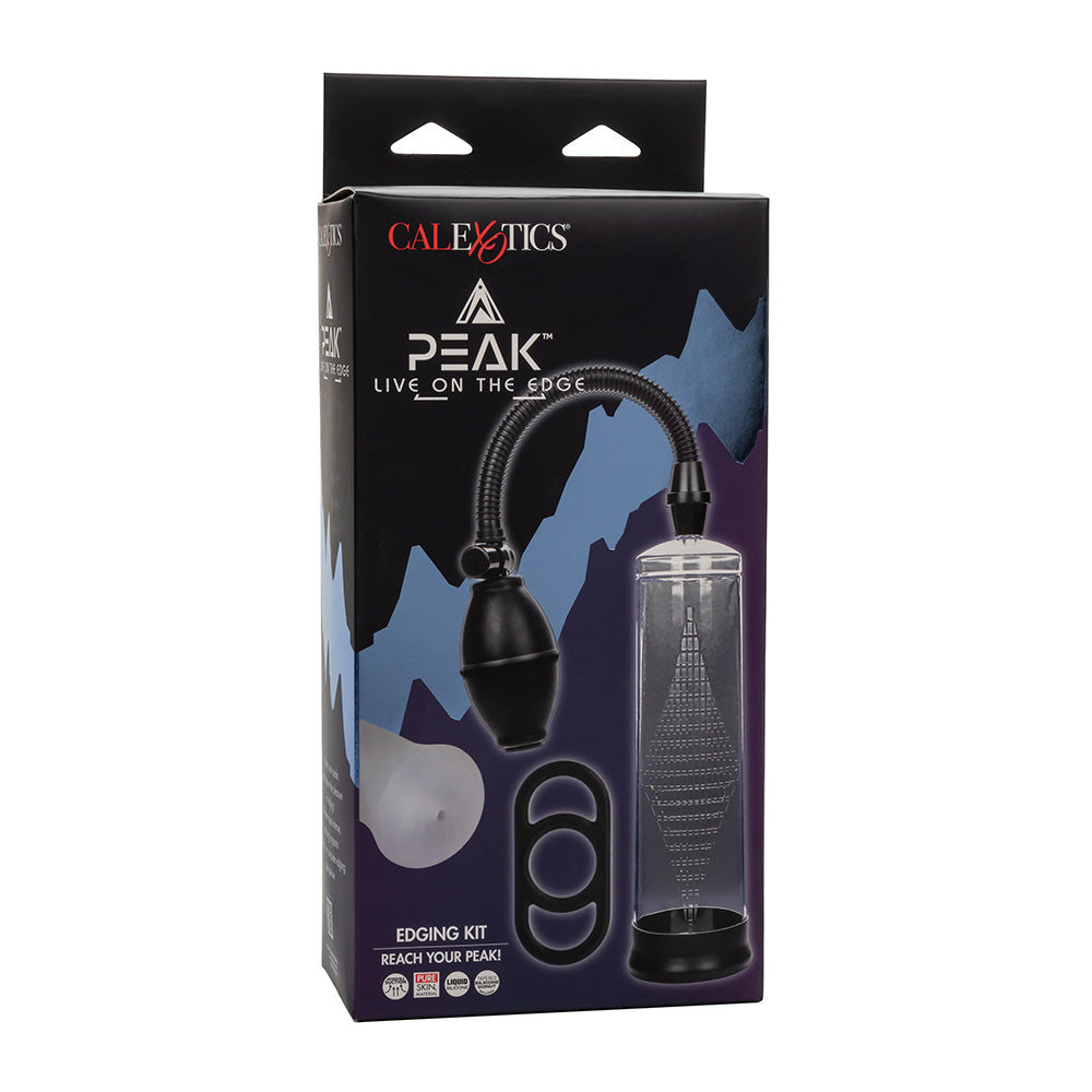 Pump it up and keep it up with the Peak™ Edging Kit With Penis Pump, Masturbator Sleeve & Cock Ring!