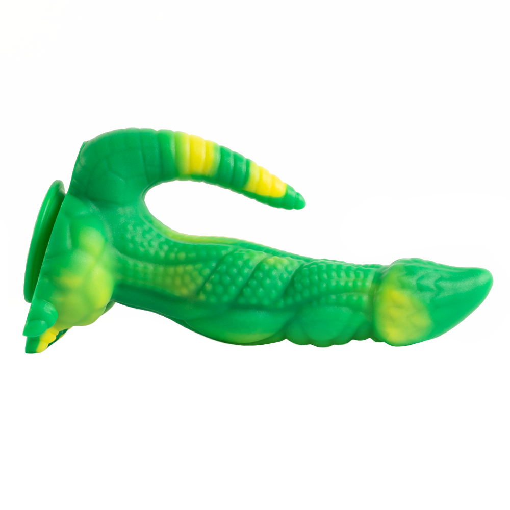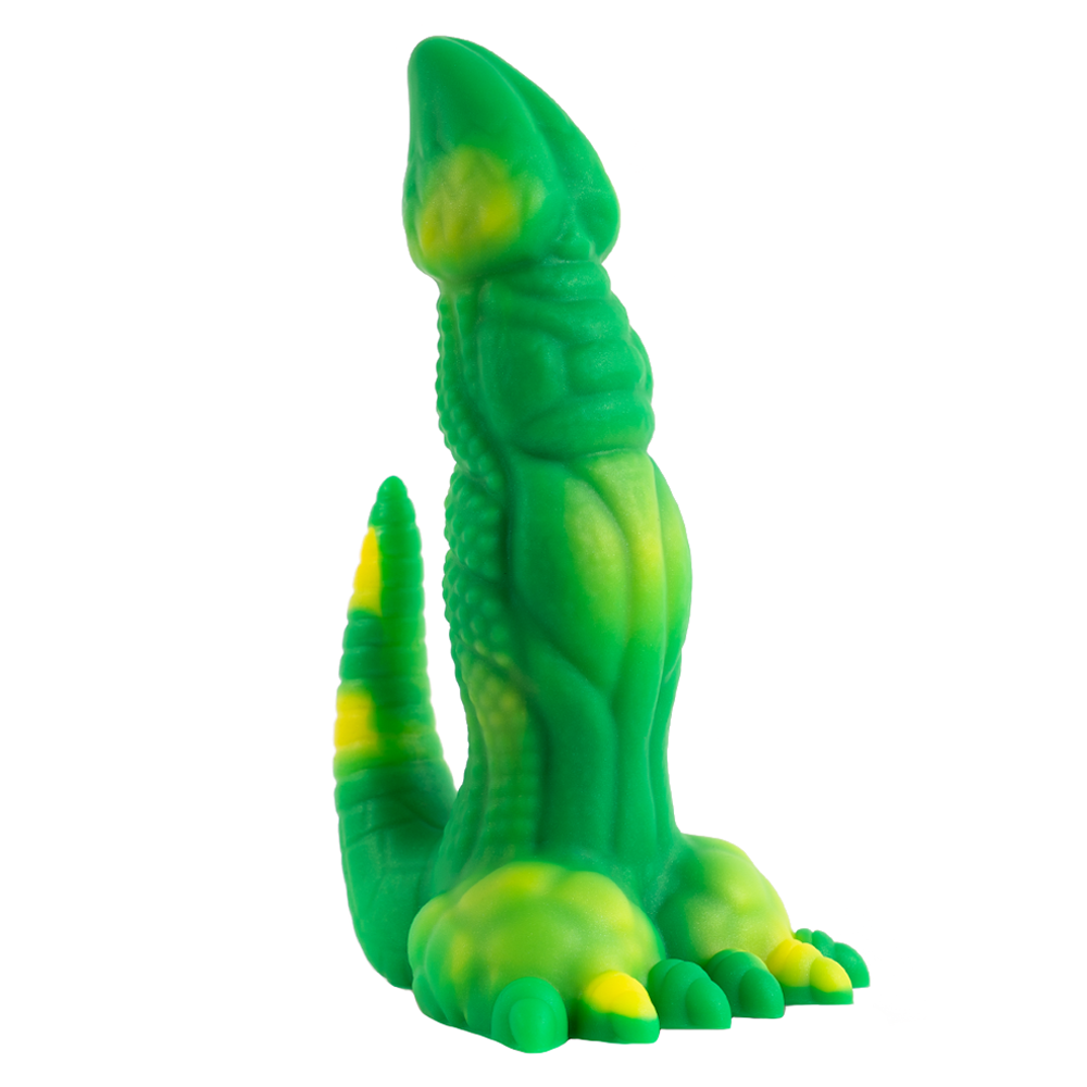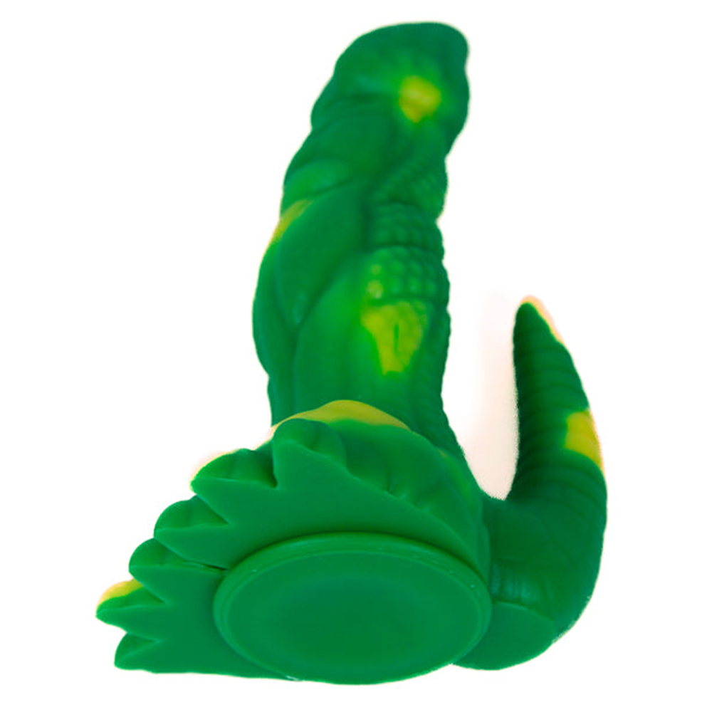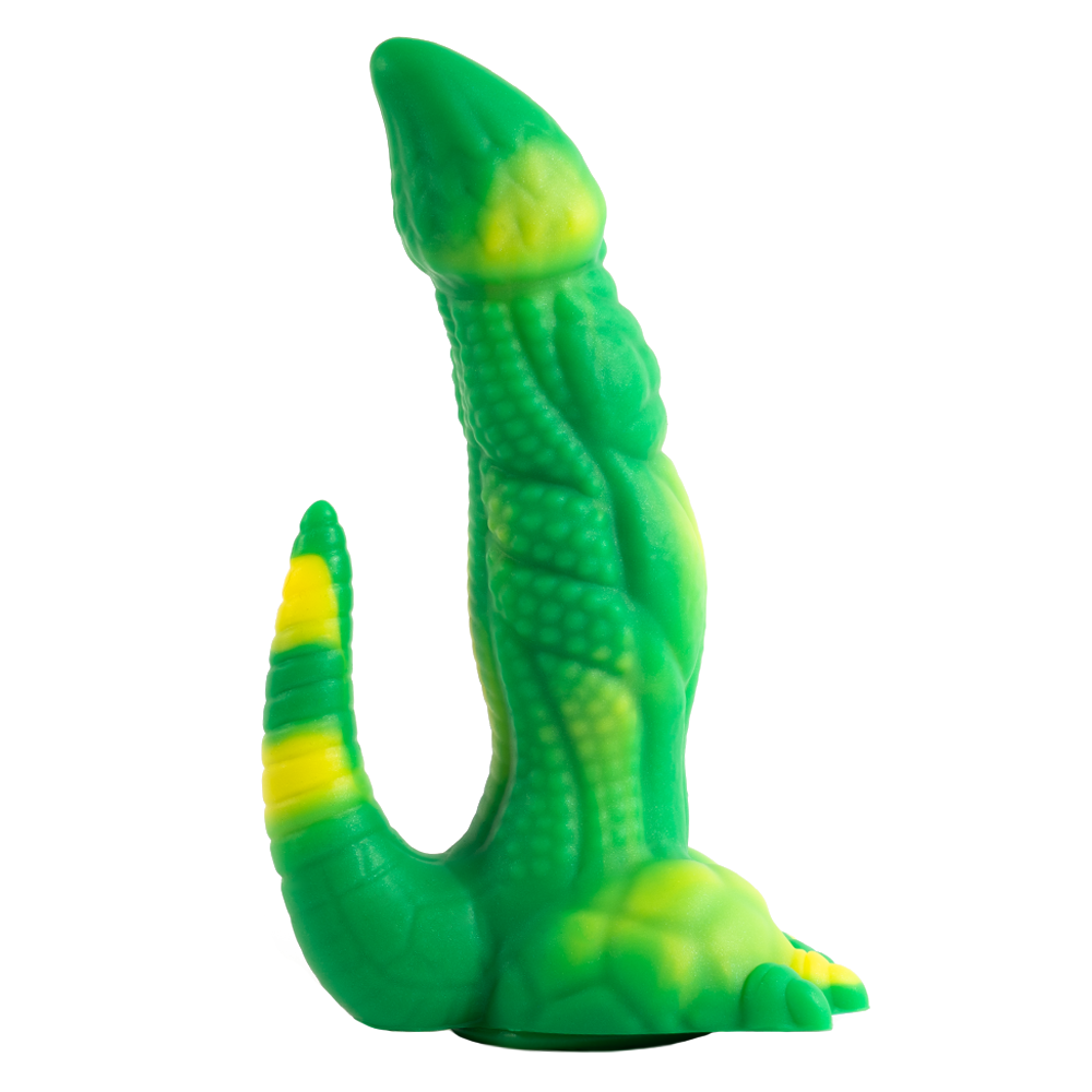 This dino-dildo shows you exactly why it's at the top of the food chain with a dotted scale-like texture down its back that will rub against your inner walls to bring you intense stimulation and pleasure. The underside of its reptilian belly is smooth with some light ridges, allowing you to use this toy with its textured side up or down for a different experience each time. The tapered tip makes it easy for you to insert and the silicone is flexible and soft, moving comfortably with your body when inside you. Like its namesake, the Cockzilla has a textured tail, which not only ensures that this toy is anal-safe, but the protrusion can also be used as an anal tickler. It can also provide a unique textural sensation against your clitoris or perineum when the shaft is being thrust inside!