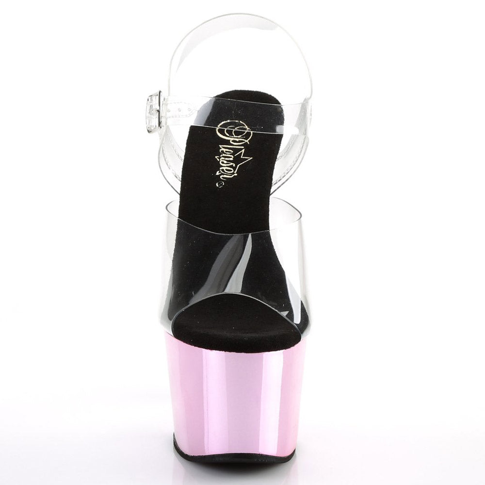 Feel pretty in pink when you step out in the Pleaser® Adore - 708 Lisa - Clear/Baby Pink Chrome!