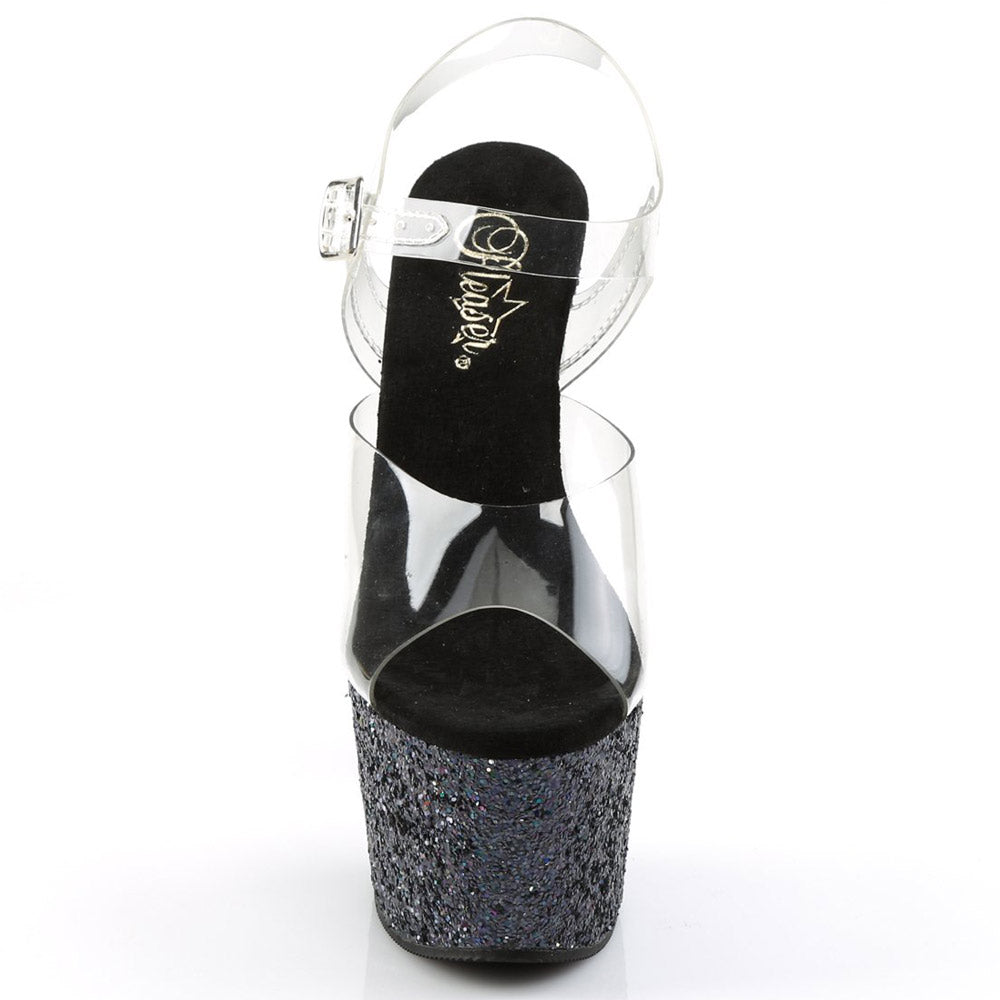 Key features of the Pleaser Adore - 708LG Lisa - Clear/Black Glitter: