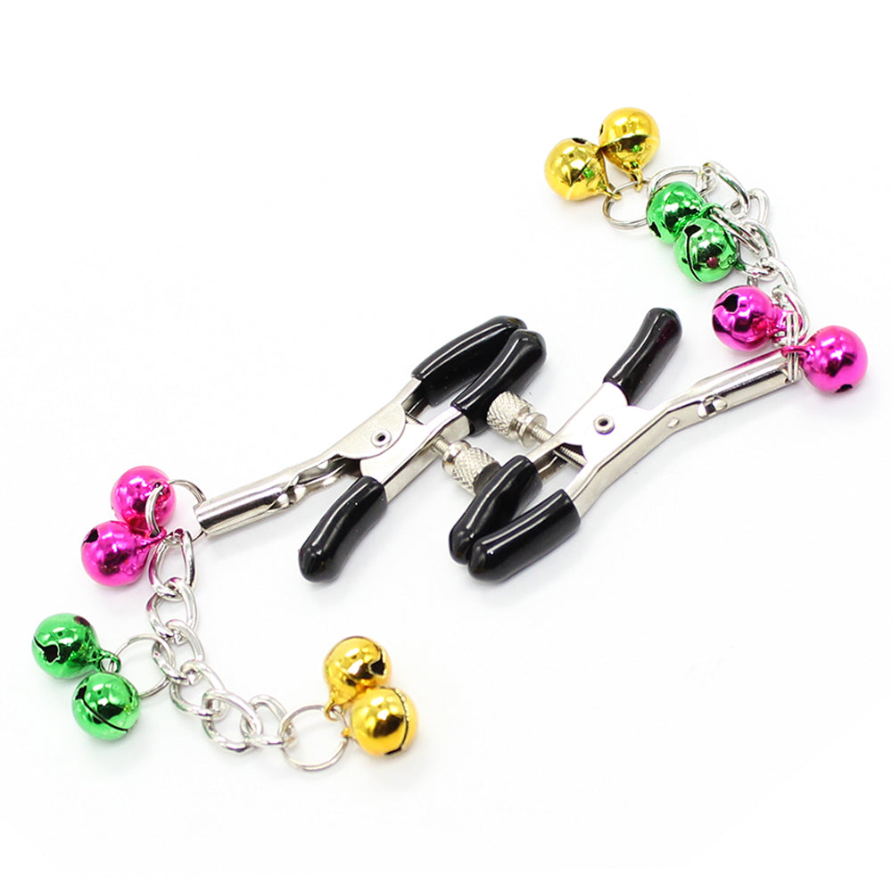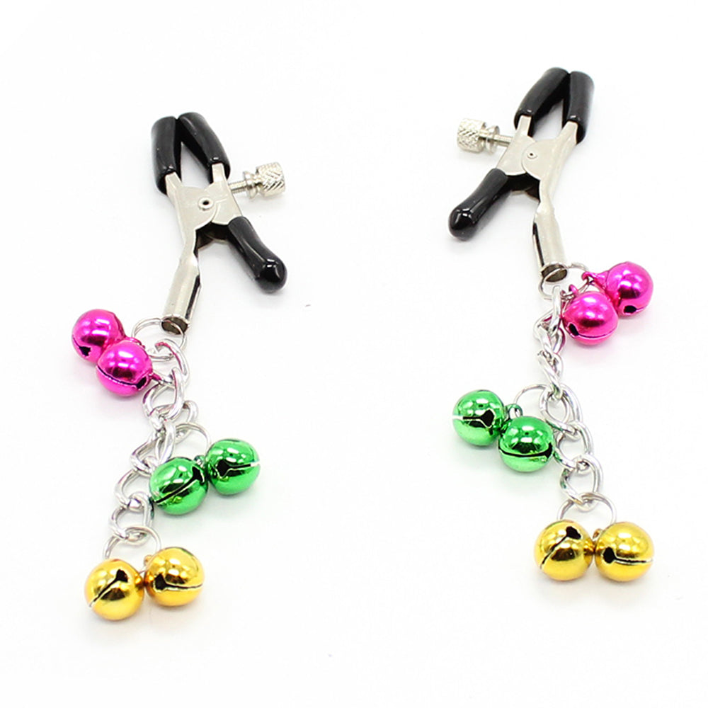 These nipple clamps feature a dangling chain adorned with 6 multicoloured bells that emit a cheerful jingling whenever the wearer moves. This sound is the perfect accompaniment to the wearer's moans of pleasure as the alligator-style clamps pinch and stimulate their nipples, or perhaps in addition to the delicious slapping sounds of impact play for kinky folks who love all things audible!