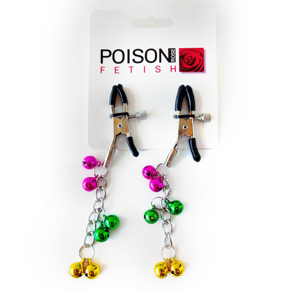 You'll love making extra noise in the bedroom with the Poison Rose Nipple Clamps With Coloured Bells!