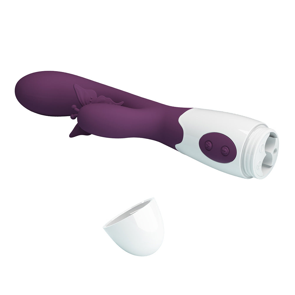 Pretty Love Butterfly Kiss Rabbit Vibrator is made from silky-smooth silicone that glides like a dream with water-based lubricant and is a cinch to clean with warm water and toy cleaner. Once you need a power top-up, just unscrew the battery compartment and replace the AAA batteries with a fresh pair so your buzzing butterfly will always be ready to sweep you off your feet...