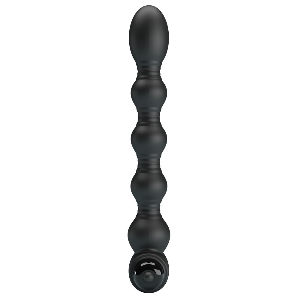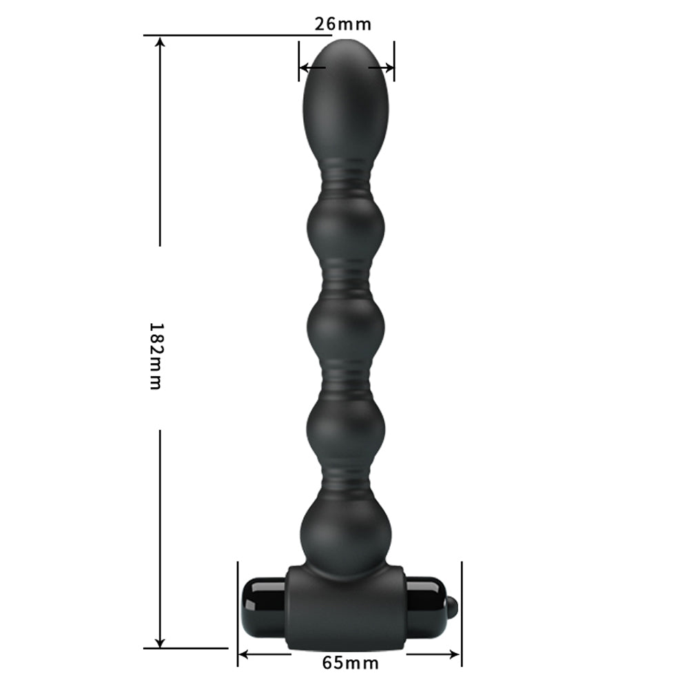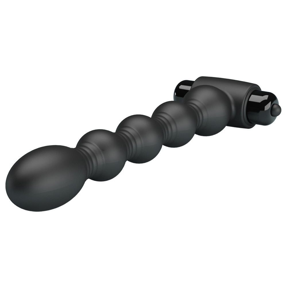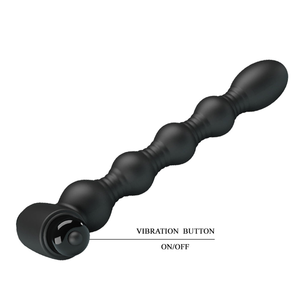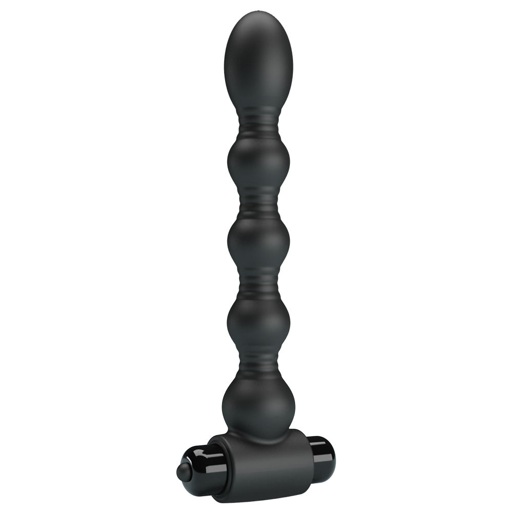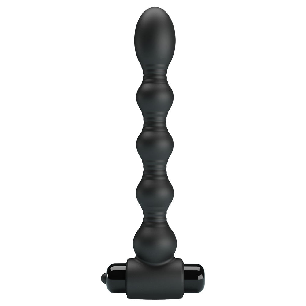 These poseable vibrating anal beads have flexible necks between each of the 5 filling beads and are the perfect anal toy for backdoor beginners or experts alike! Pair the soft black silicone with a water-based lubricant for an unbeatably smooth glide as the tapered tip of the first bead enters you effortlessly! Press the control button on the built-in bullet vibrator at the base to activate 10 tantalising modes of vibration that will tease and please your backdoor to the max...