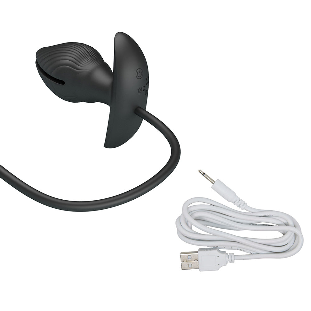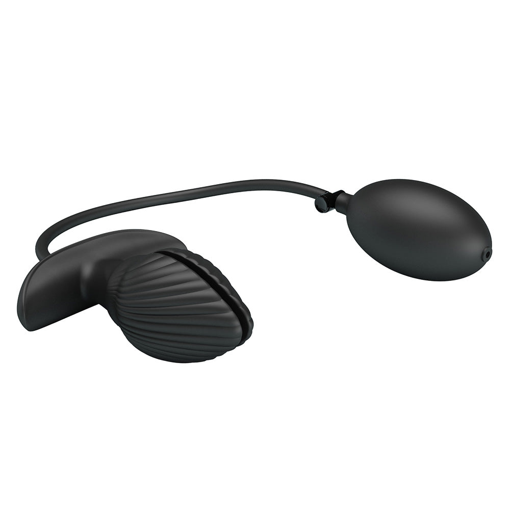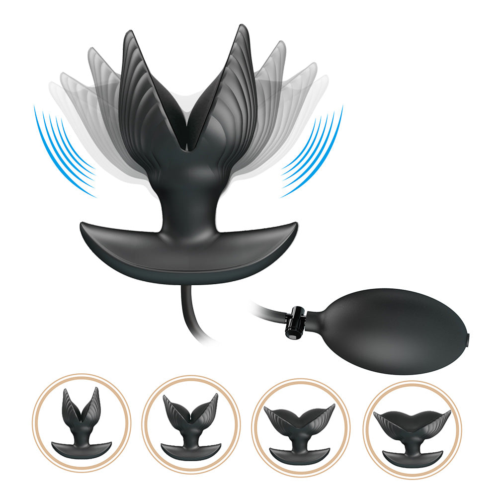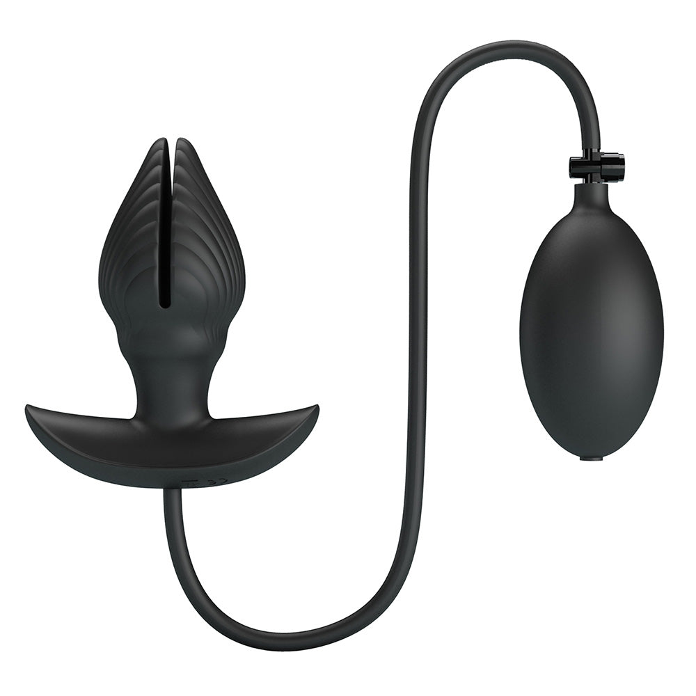 This unique anal toy is an inflatable butt plug with a split design that allows you to feel fuller than ever before. The soft silicone is lightly ribbed for extra sensation against your inner walls as you pinch both halves together and gently glide it into place (with the help of some water-based anal lubricant of course). Once it's in place, you can squeeze the attached pump ball to start inflating the plug and cause the halves to widen and spread apart for a truly fulfilling experience like no other! For even more sensation, hold the power button underneath the base of the toy and tap to cycle through 10 toe-curling modes of vibration that are sure to send you over the edge of ecstasy...