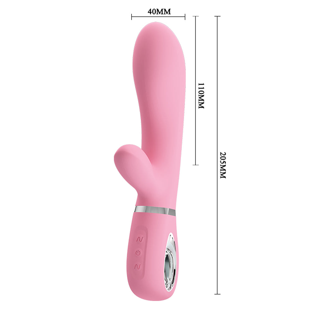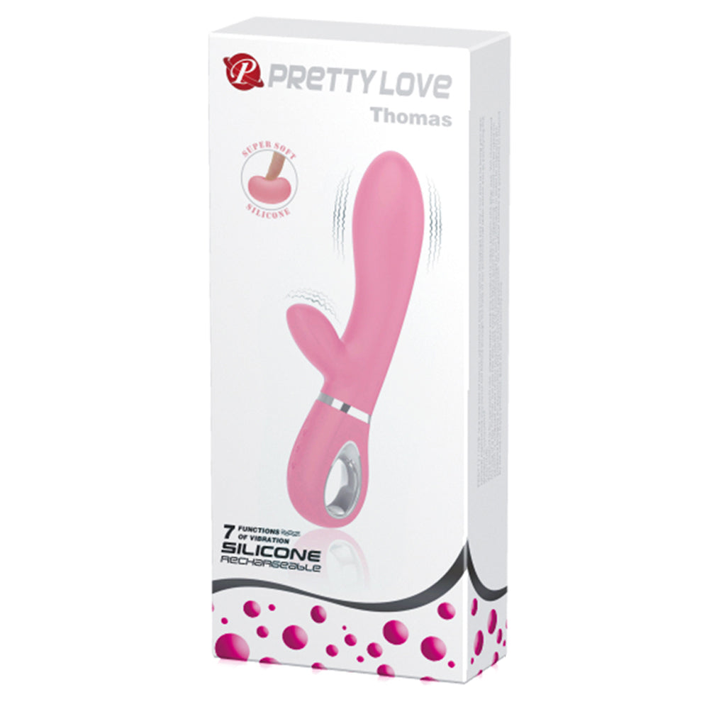 Enjoy mind-blowing internal G-spot massaging and clitoral stimulation with the Pretty Love Thomas Dual-Density Silicone Rabbit Vibrator!