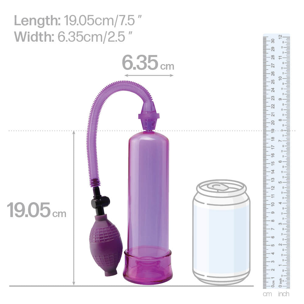 The Beginner's Power Pump features a smooth, flexible PVC opening that creates an air-tight vacuum, resulting in long-lasting erections that are sure to please you and your partner. You can watch your growth before your very eyes through the clear vacuum tube, and the quick-release valve relieves the pressure with just the push of a button, perfect for putting your powerful new pleasure rod to good use as soon as it's ready! Once your pumping fun is done, cleanup is a snap thanks to the detachable, waterproof design.