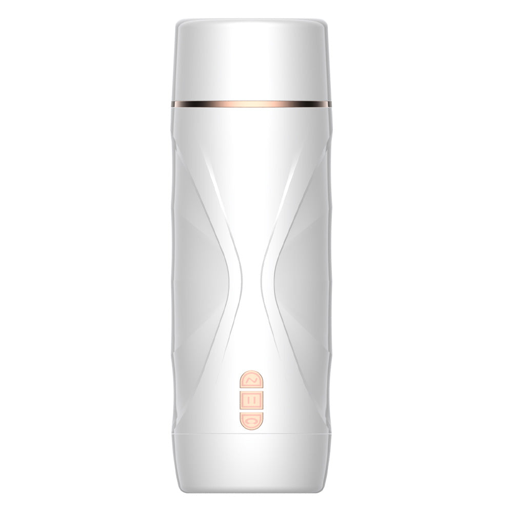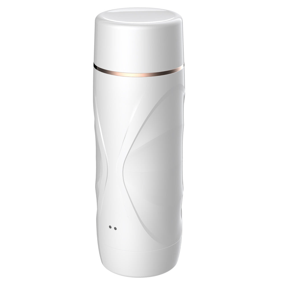 The whole masturbator unit comes in a discreet white case trimmed with gold accents for a high-end look that doesn't reveal the purpose of your toy. It disassembles easily for hygienic cleaning between sessions — simply slide the out (leaving the corded vibrating bullet inside the case) and rinse it with warm water and toy cleaner, then leave it to air-dry. Afterwards, attach the included magnetic cable to the metal charging points on the back of the case to charge it up for the next round!