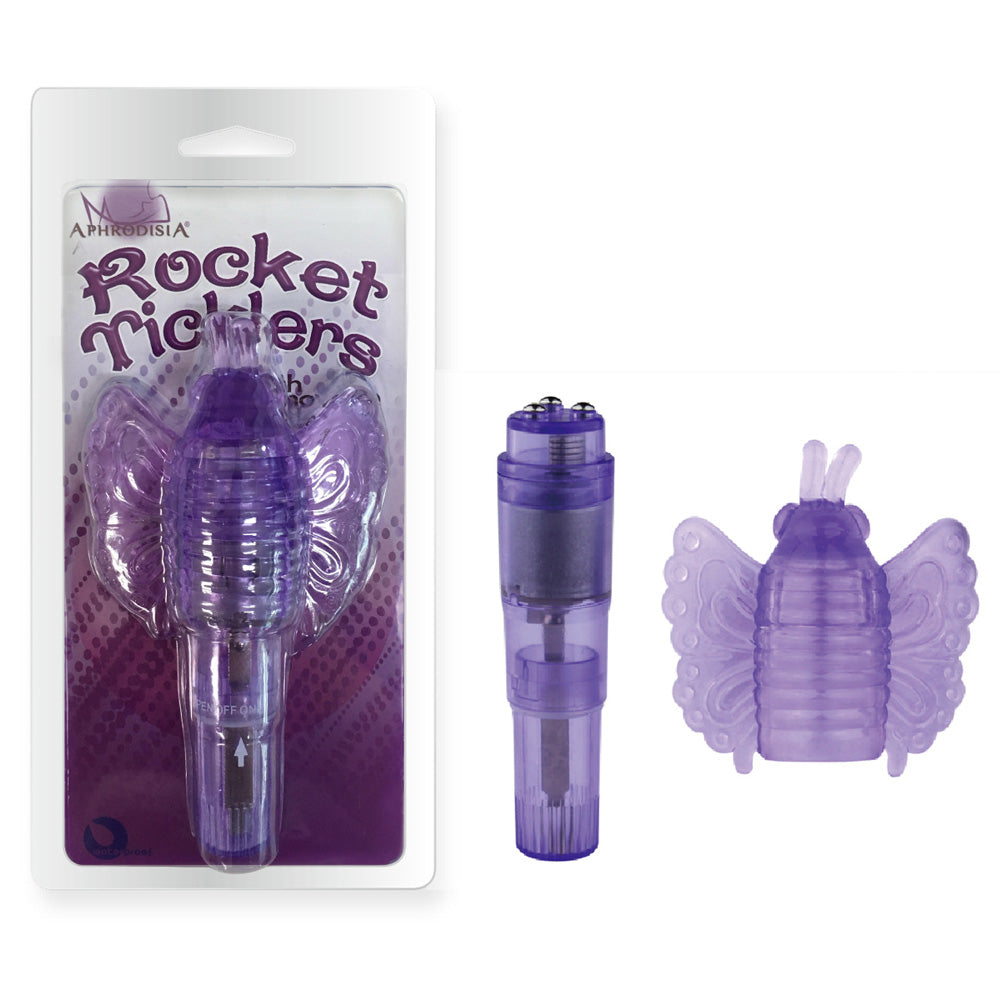 Soar to new heights of pleasure thanks to the Rocket Ticklers Vibrator With Butterfly Sleeve by Aphrodisia®!