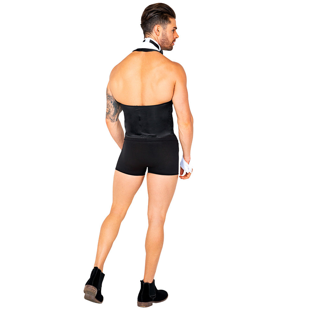 Serve more than just a look in the Butler Beefcake Costume With Backless Tuxedo Vest from Roma!