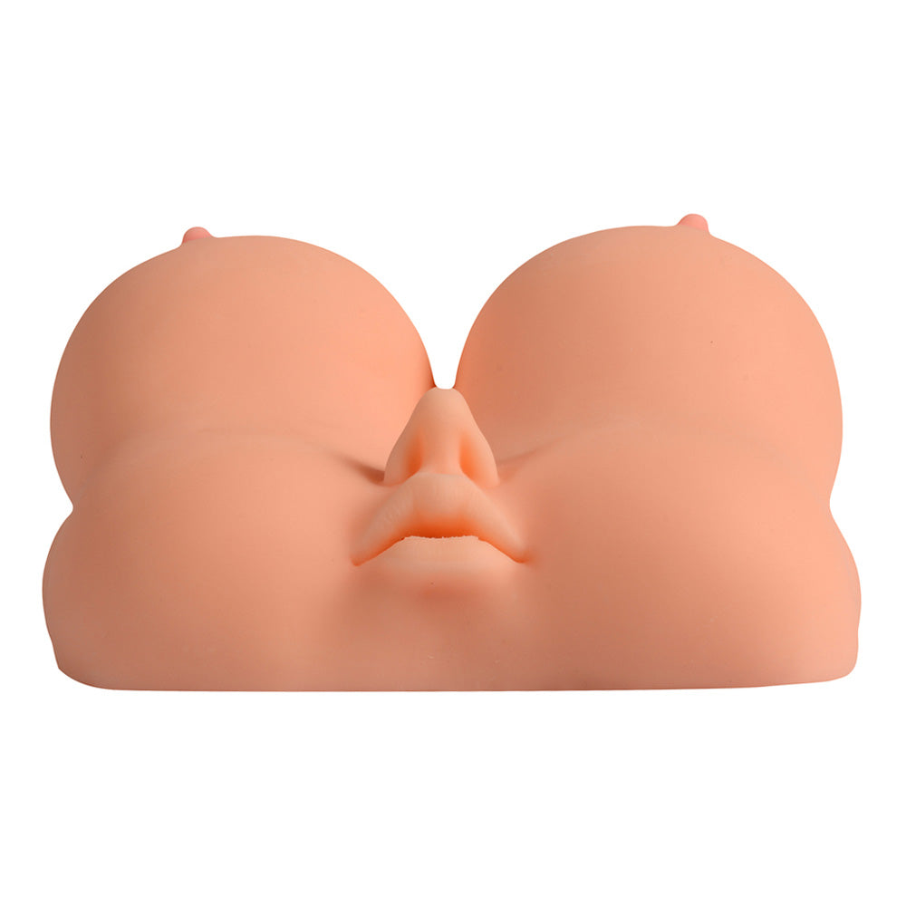 This unique masturbator features deliciously full 36DD breasts (proportionate to the rest of the body) as the magnificent centrepiece, topped with pink areolas and erect nipples that are just begging for you to roll them between your fingertips. You can push the breasts together and add a squirt of water-based lubricant to the deep cleavage for a smooth ride as you watch yourself sliding between her pillowy mountains while squeezing them in your palms...