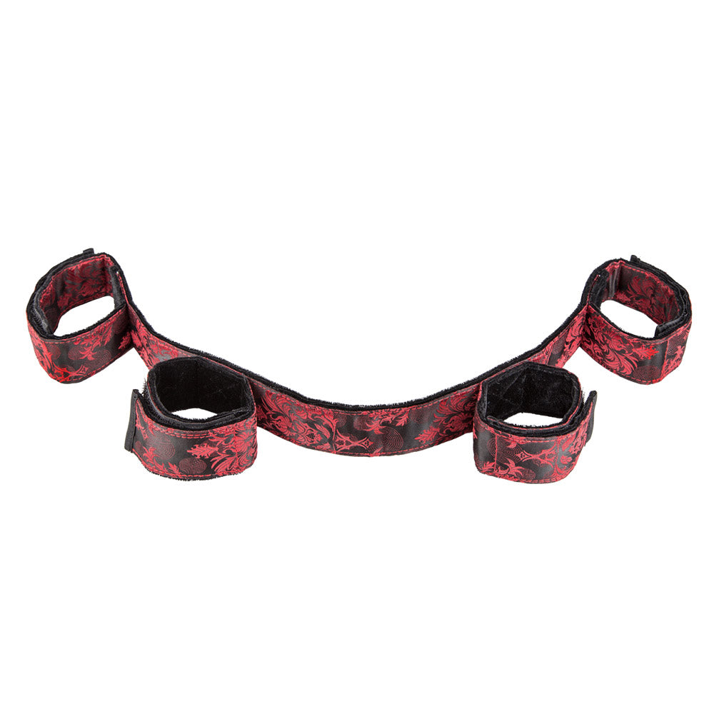 Take restraint play to a whole new level thanks to the Scandal® Collapsible Bondage Bar With Wrist & Ankle Cuffs!