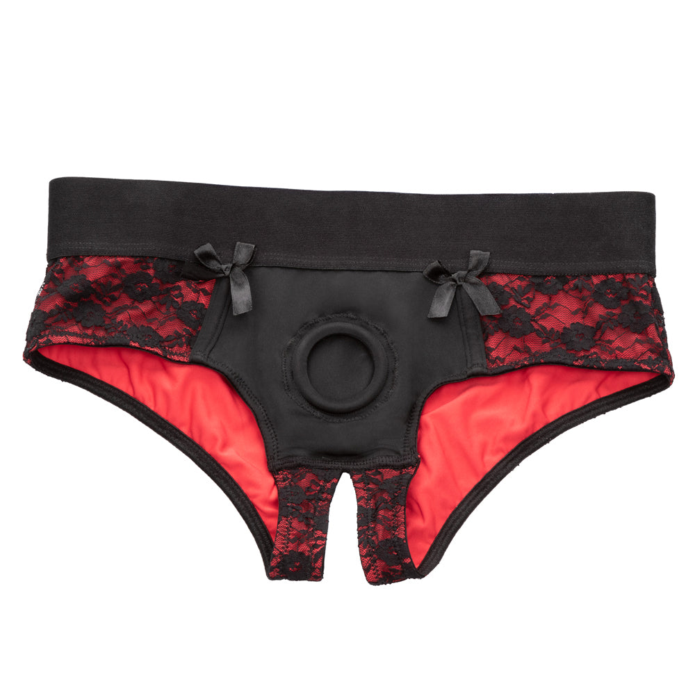 Indulge in the thrilling world of role reversal and pegging with the Scandal® Crotchless Pegging Panty Set!
