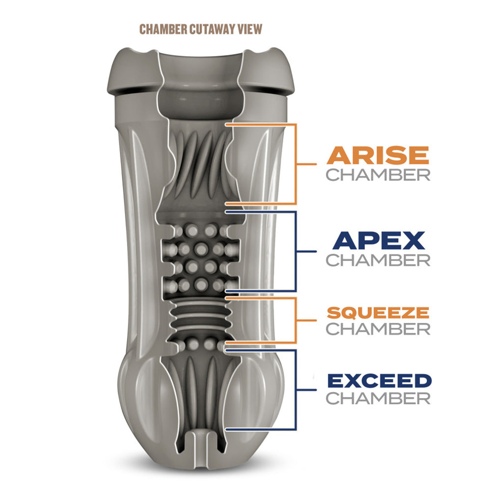 This stroker won't tantalise your tastebuds but it will give you a different kind of refreshment with 4 fantastic textured chambers. The ridged Arise Chamber slides along your length while the Apex Chamber's ticklers rub all over you. The tight-fit Squeeze Chamber wraps snugly around your shaft before the Exceed Chamber flares out into intense ribs to stimulate the head of your penis with every deep thrust. At the end of the can, the Perfect-Flo™ suction valve lets you customise the suction intensity simply by sliding the built-in cover over the air hole so you can enjoy peak pleasure your way!