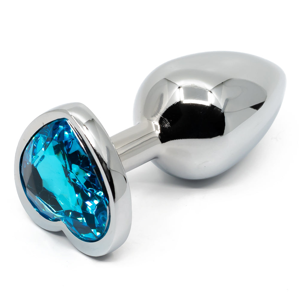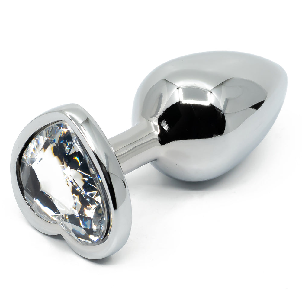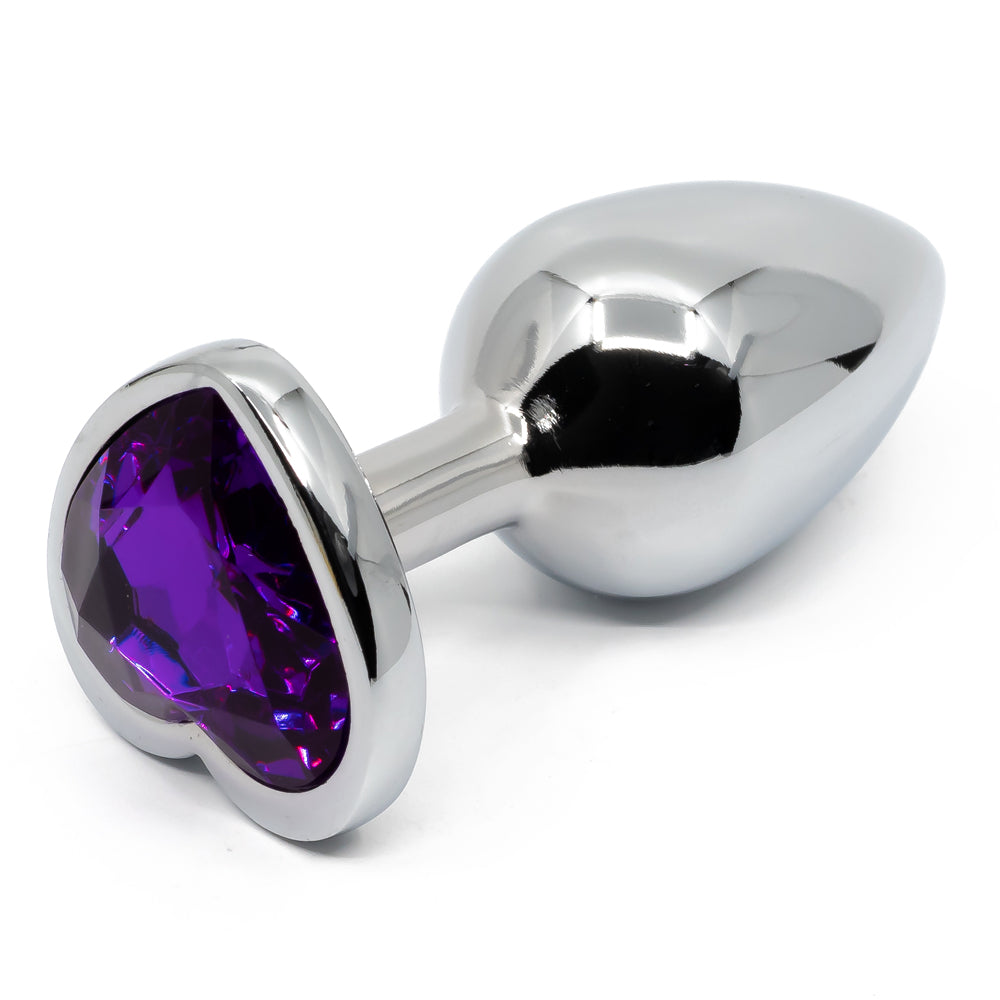 Bring the bling to your behind while filling yourself with pleasure with the Small Seamless Metal Butt Plug With Heart Gem!