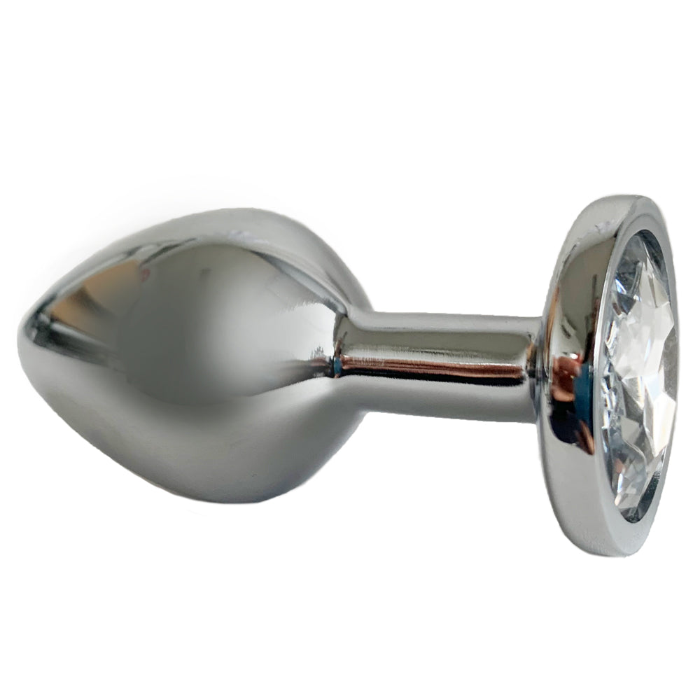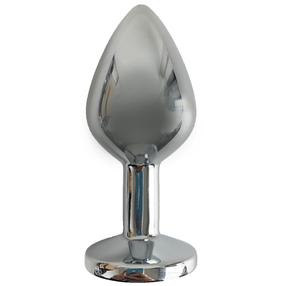 Bring the bling to your behind while filling yourself with pleasure with the Medium Seamless Metal Butt Plug With Round Gem!