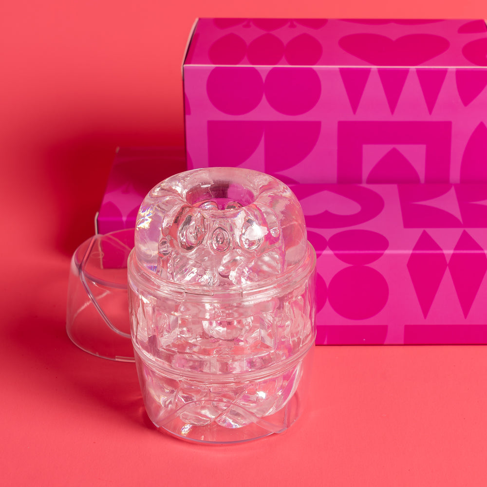 This textured dual-opening toy lets you enter from either end for up-down stroking during solo sessions, or you can focus on the shaft and base while a partner shows off their oral skills and tends to the tip!