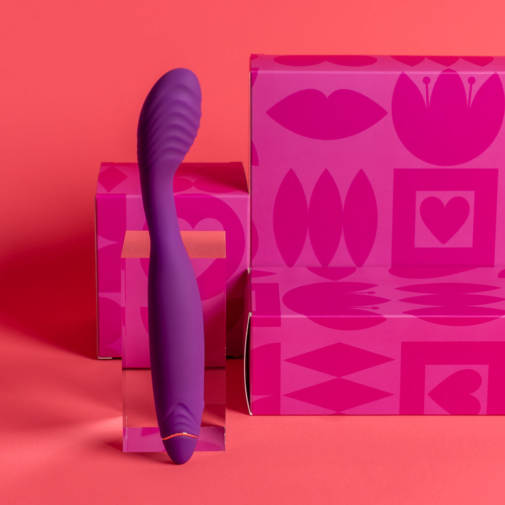 This elegant stimulator is blessed with an elongated, angled head that cups your vulva and clitoris beautifully, or can be inserted to lightly massage your G-spot with its ribbed, vibrating head.