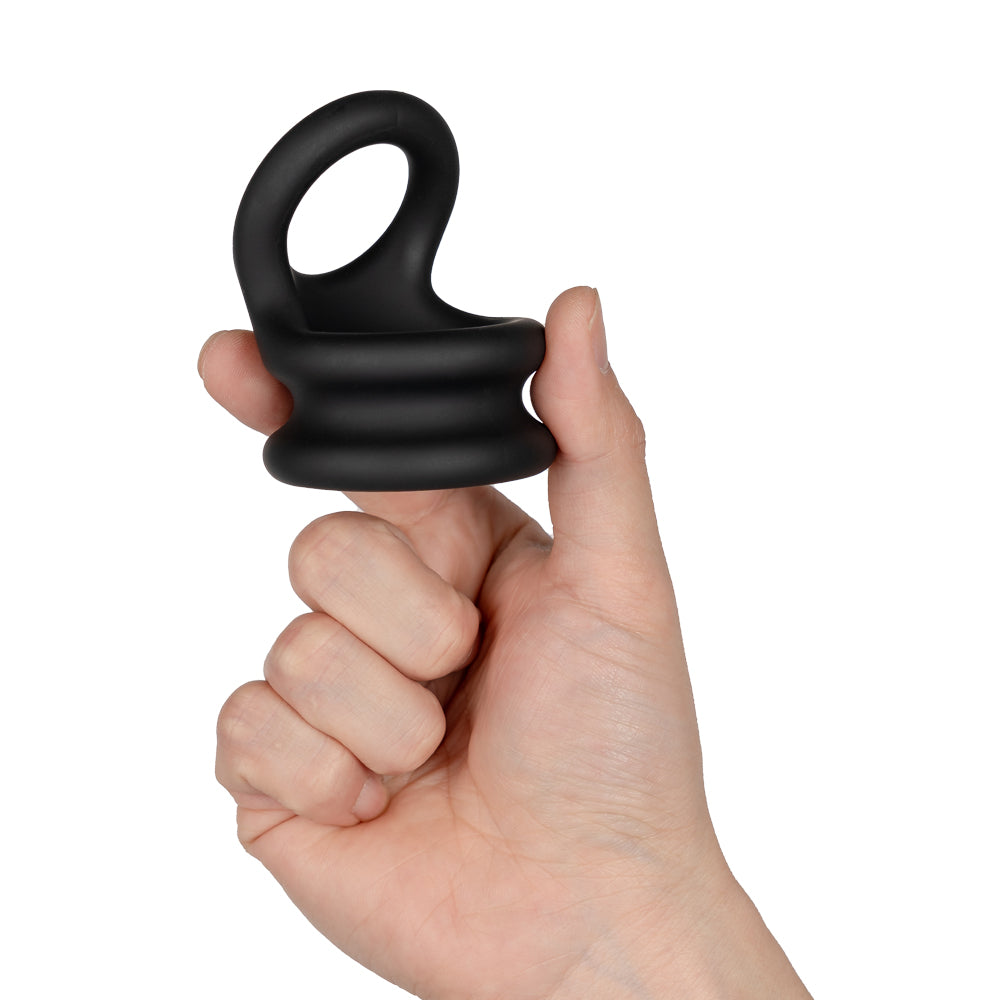 This cock-and-ball ring has a thick design that anchors the toy securely around your erection and gently pulls your testicles down, stretching the scrotum for lower-hanging balls that swing and sway. The soft silicone stretches to fit over most users and hugs your shaft snugly without digging in, offering a comfortable fit that keeps you harder for longer and boosts endurance, performance, and orgasm intensity for your most explosive finish yet! The body-safe silicone is fully waterproof so you can enjoy yourself everywhere from the bed to the bath and follow up your session with a warm water rinse and a spritz of toy cleaner so it's refreshed and ready for your next session.
