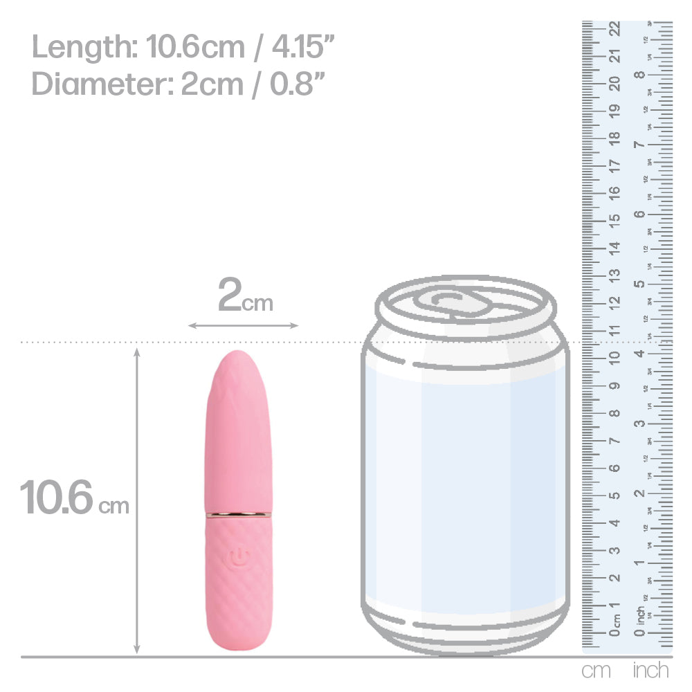 This slim, travel-friendly bullet vibrator features a tapered tip that comes to a point so you can direct the pleasurable vibes right where you want them, from the nipples to the clitoris. The tip is also adorned with a raised texture like the petals of a flower in bloom, adding extra stimulation as you navigate the buttery-soft silicone tip over your body's erogenous zones. The handle of this vibrating bullet features a luxurious quilted texture that offers you a more secure grip during play and houses a single push-button for fuss-free control over your vibe settings — just hold the button to bring the bullet to life, then tap to explore 10 vibration modes that'll have your toes curling in no time!