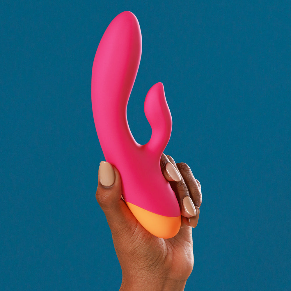 This sleek rabbit vibrator has two vibrating motors that shimmy simultaneously in 12 toe-curling vibration patterns for unforgettable blended bliss across your G-spot and clitoris. The bulbous G-spot head is sure to hit the spot just right while the flexible neck helps you guide it into place for a perfect fit. Best of all, it's easy to find your favourite vibration function thanks to the intuitive 3-button controls, which let you explore the 12 vibe modes forwards and backwards so you're always in control!