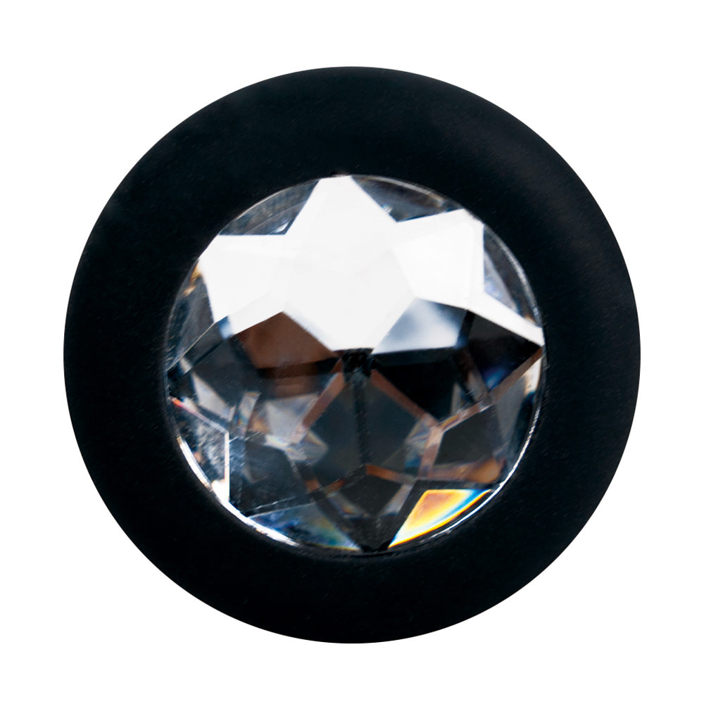 - The wide stopper base with a dazzling crystal gem holds the plug at a safe depth