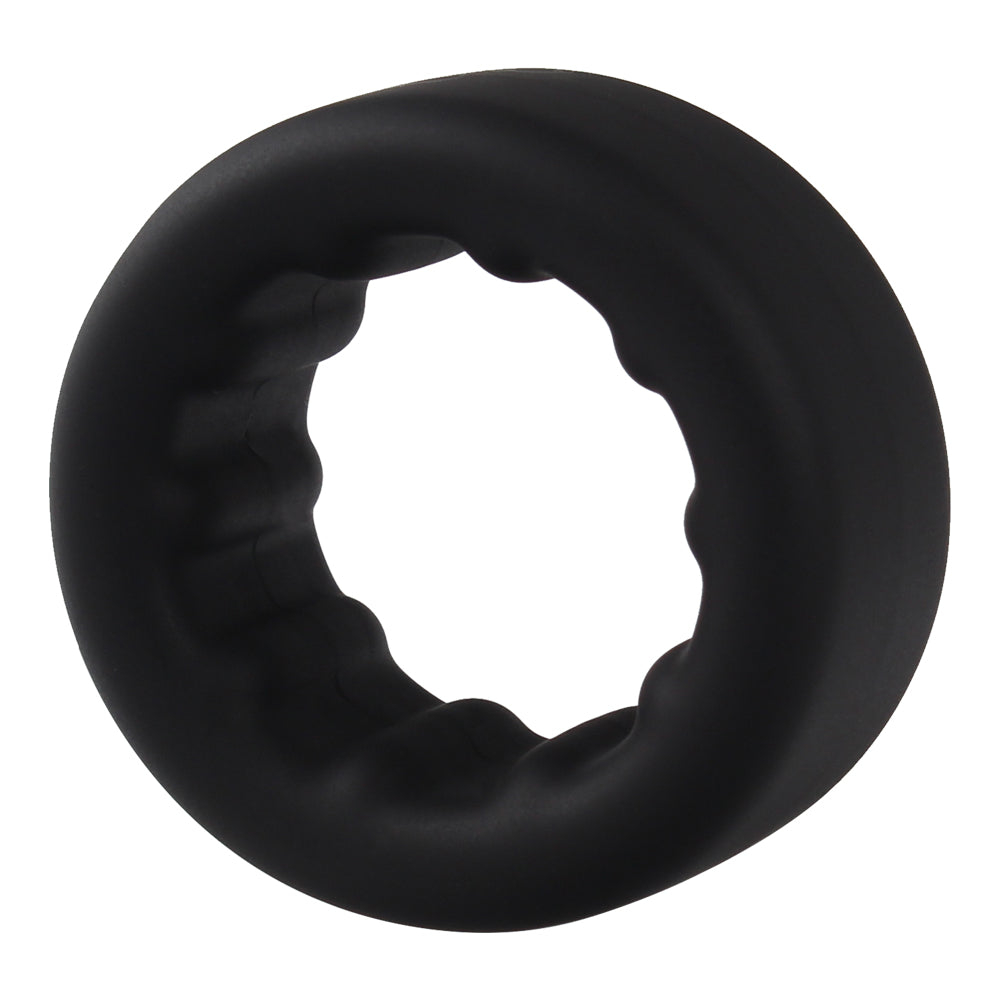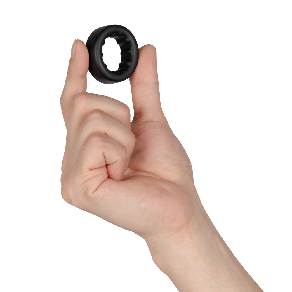 This sturdy cock ring is made from soft and stretchy silicone that hugs your shaft snugly, trapping blood flow in your erection to keep it harder for longer and intensify your orgasm for an explosive finish. The interior is adorned with a ribbed texture that holds the ring securely in place so it doesn't budge, even during the wildest of rides! The super-soft liquid silicone material is extra thick so it won't dig into your skin and is fully waterproof for easy cleaning with warm water and toy cleaner, as well as pleasure sessions in the shower or bath that go for longer than ever...