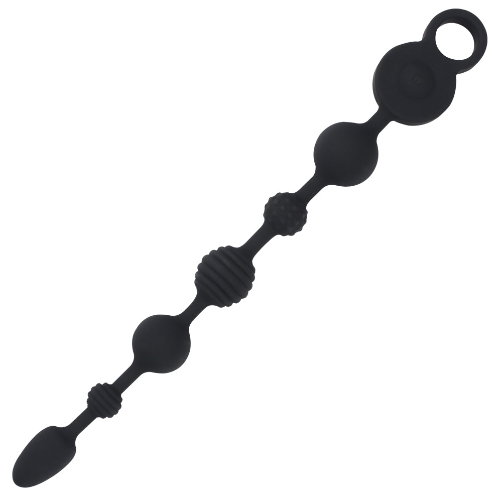 This flexible strand of vibrating anal beads features a tapered tip that's easy to insert, followed by 5 balls of alternating sizes and textures to satisfy any backdoor player who makes variety the spice of their sex life. If you're ready for more sensation, hold the power button on the handle to activate the vibrations, then tap to cycle through 10 tantalising vibration modes and clutch the sheets tighter than ever as you feel the 3 vibrating motors rumble to life in 3 different sections inside you (the tip, middle ribbed bead, and last bead)!