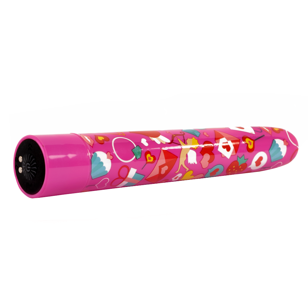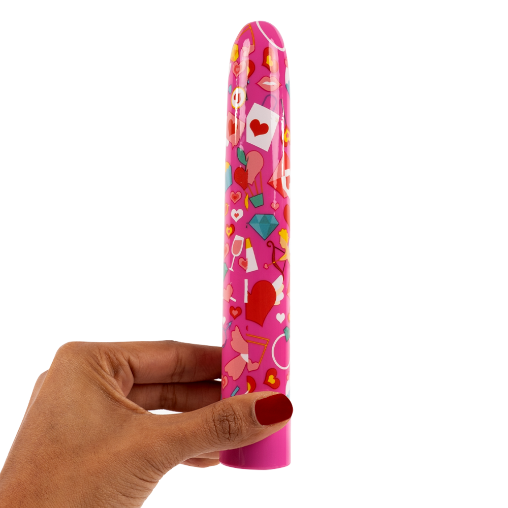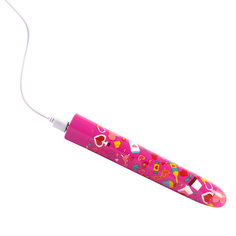 The Sexyland Sassy Straight Vibrator is made from body-safe ABS plastic in a fun patterned finish that's fully waterproof so you can seamlessly transition the fun from your bed to the bath. The silky-smooth finish is easy to clean with warm water and toy cleaner, followed by a battery top-up with the included magnetic power cable that makes charging up a snap, literally—just aim it at the metal points underneath the vibrator and watch as it clicks itself into place like magic!