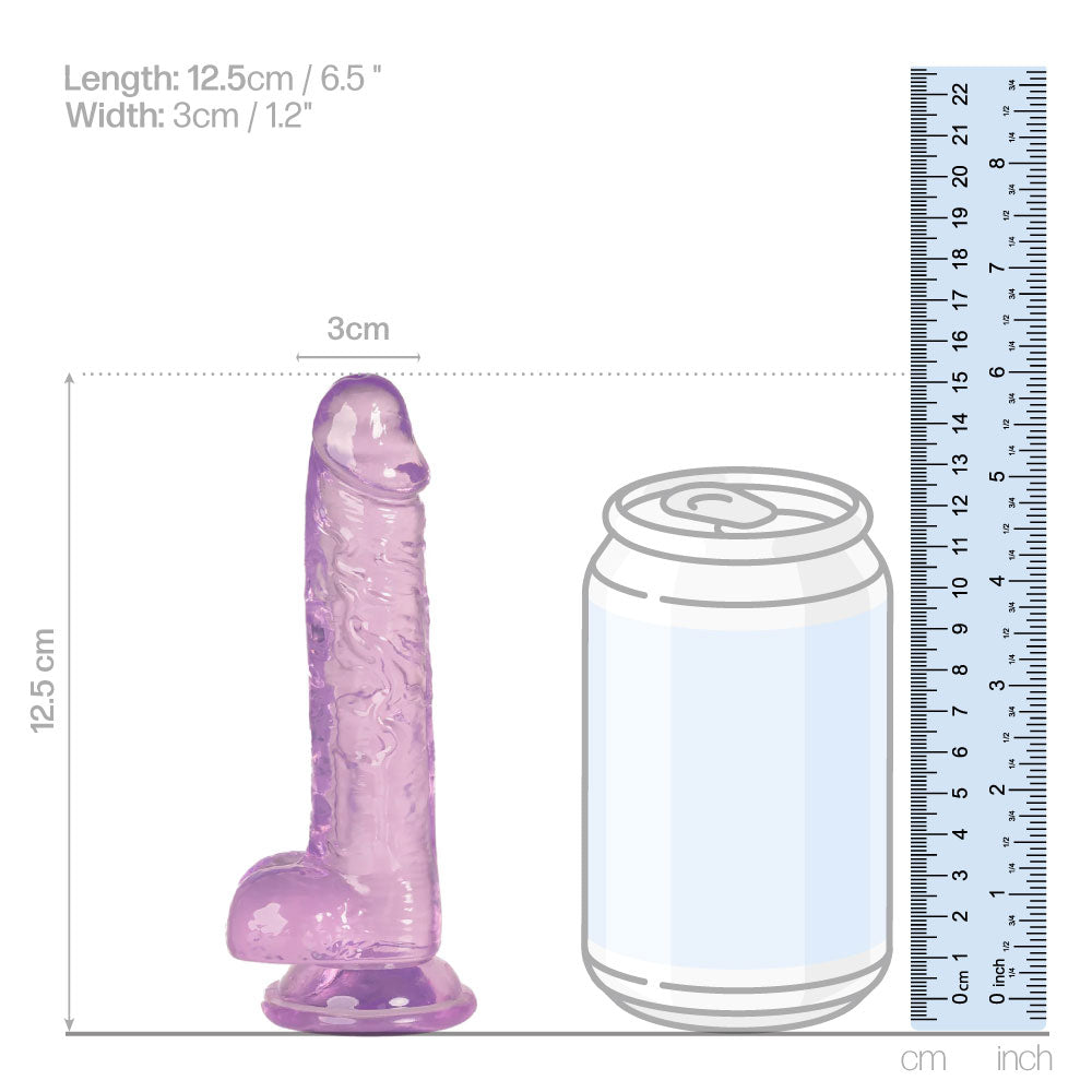 This transparent jelly dildo is sculpted into a lifelike shape and petite, beginner-friendly size with a firm yet flexible shaft that's covered in a veiny texture that massages your inner walls, and topped by a ridged phallic head for awesome P-spot or G-spot stimulation. The testicles at the base keep the dildo anchored outside your body at a safe depth for safe vaginal or anal penetration, letting you play however you like!