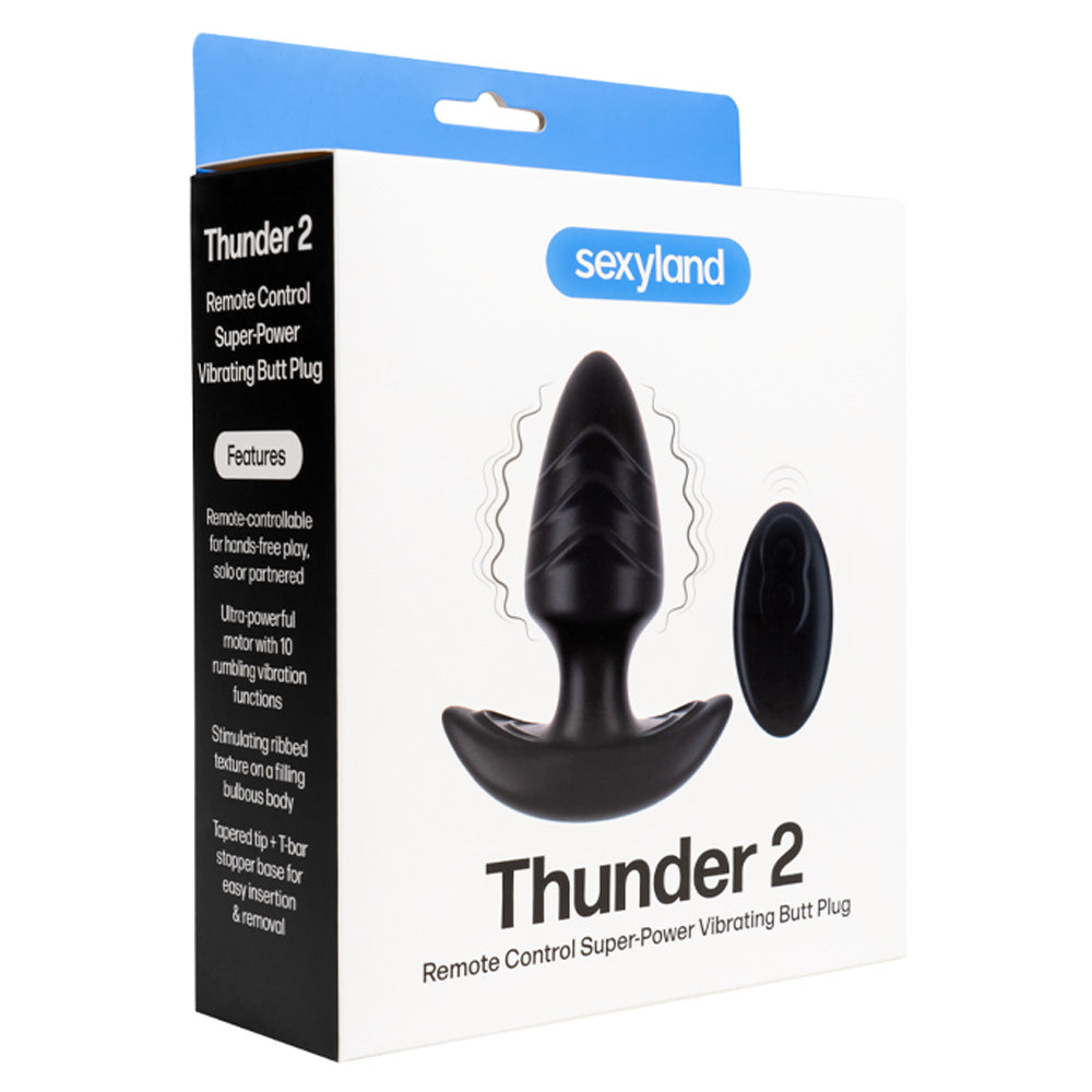 Prepare for a powerful storm of hands-free anal pleasure with the Thunder II Remote Control Super-Power Vibrating Butt Plug from Sexyland's own toy range!