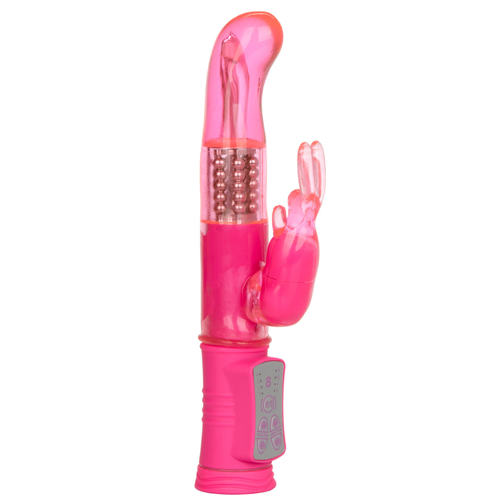 Talk about an energetic rabbit! The Jack Rabbit G--Spot Vibrator With Rotating Beads by Shane's World® features an accentuated G-spot curve atop a rotating shaft that is sure to deliver the ultimate internal pleasure. Meanwhile, the flickering rabbit ears dance over your clitoris, delivering incredible external sensation!