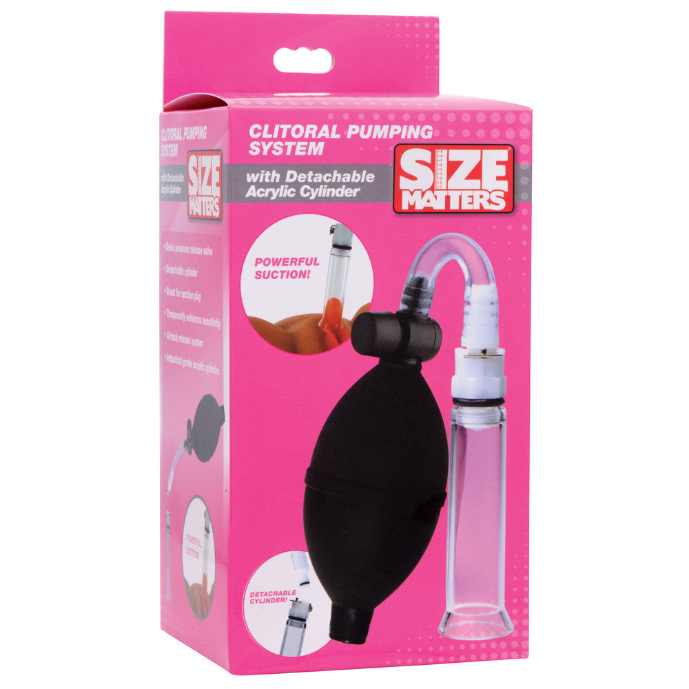 Amplify the intensity of your clitoral sensations with the Size Matters Clitoral Pumping System with Detachable Cylinder!