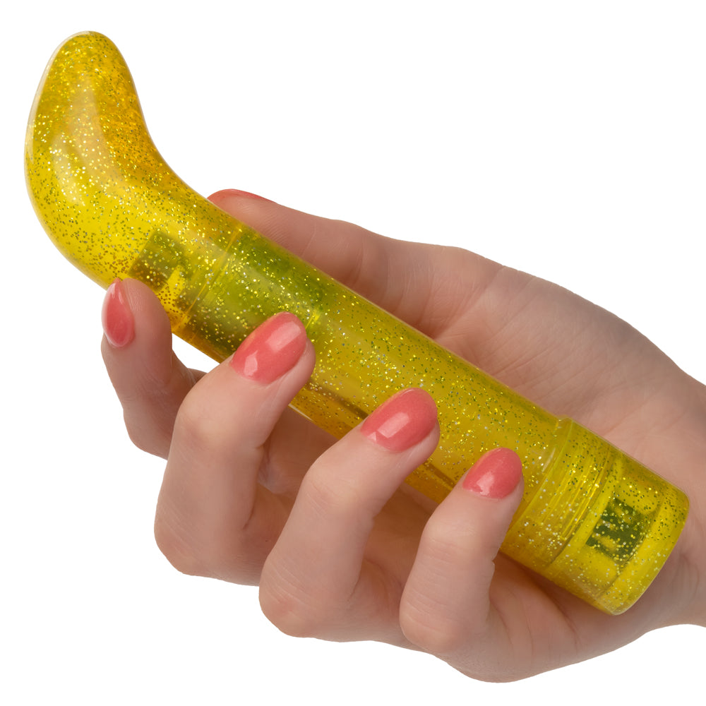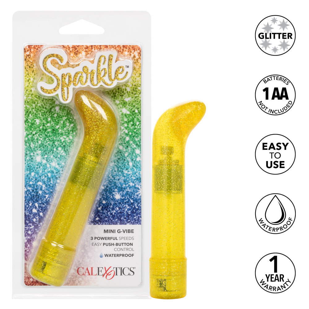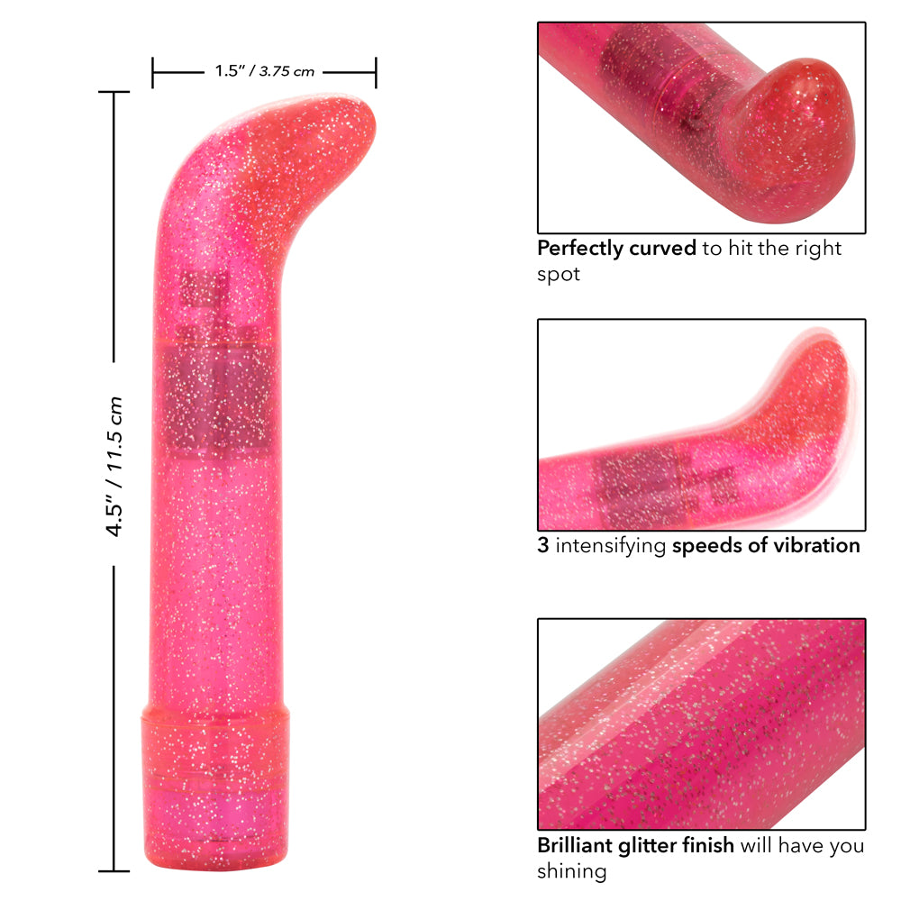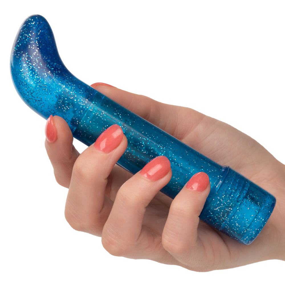 This beginner-friendly mini vibrator has a tapered, angled tip that delivers 3 thrilling vibration speeds straight to your G-spot with just the push of a button at the base. The fun glittery finish is lovely and smooth, with a body-safe design that's compatible with all lubricants for a smooth glide against your intimate areas. It's also waterproof for easy cleaning with warm water and toy cleaner, or you can take your Mini Sparkle G-Vibe for a dip under the water with you for some unforgettably hot and steamy fun!