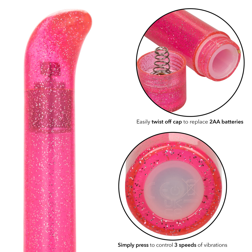 Ready to explore internal pleasure? The 3-Speed Waterproof Slim G-Vibe from CalExotics'® Sparkle™ collection is sure to hit the spot!