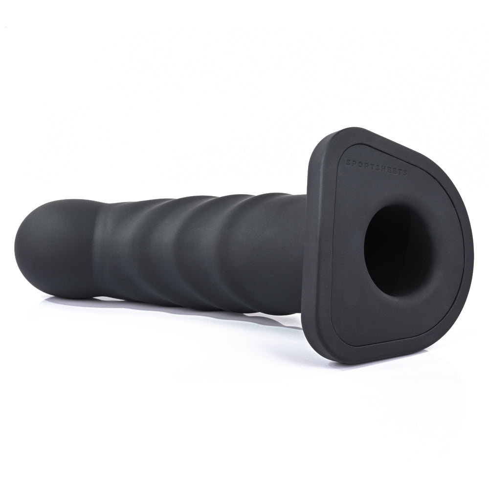 Key features of the Sportsheets Banx 8" Ribbed Hollow Silicone Sheath Dildo: