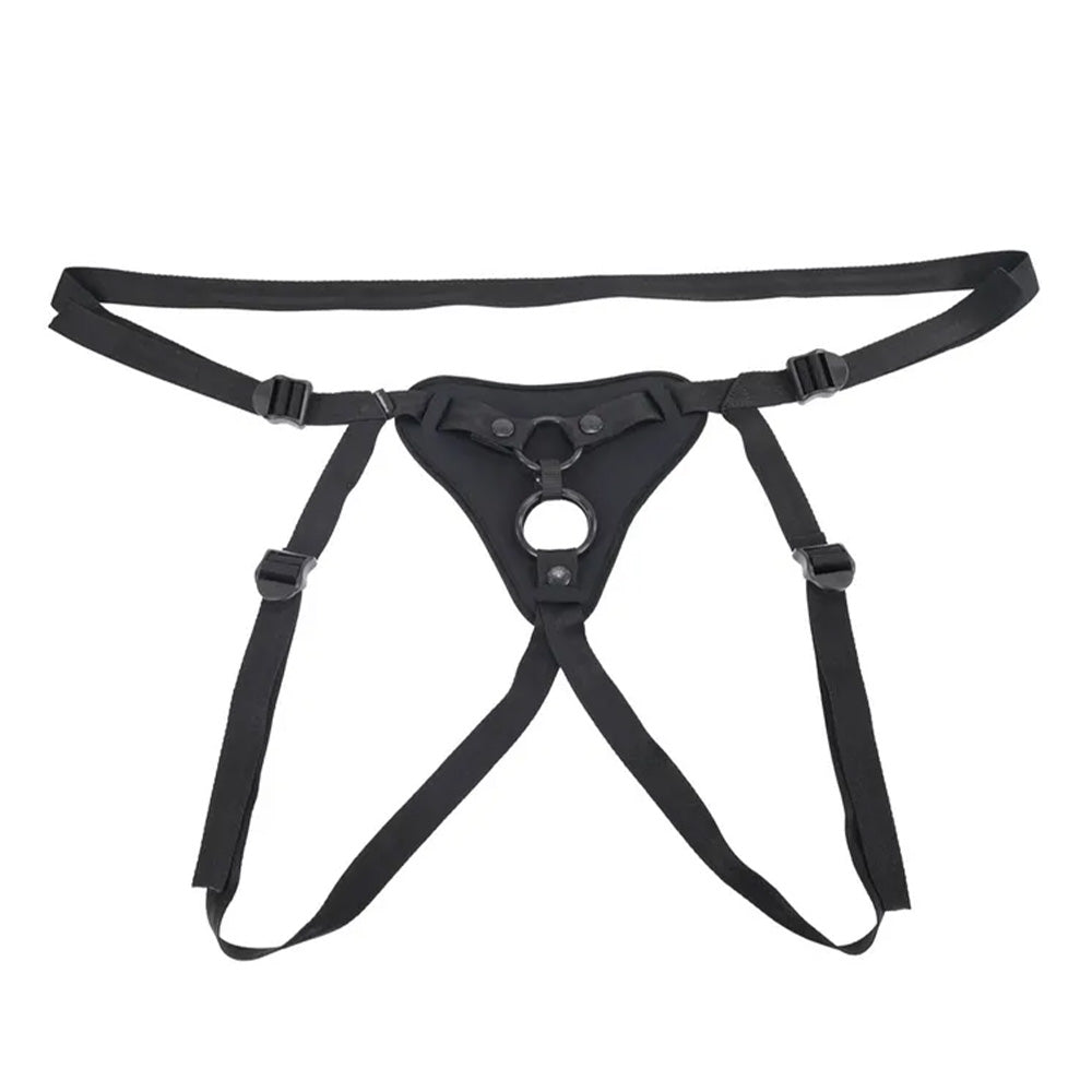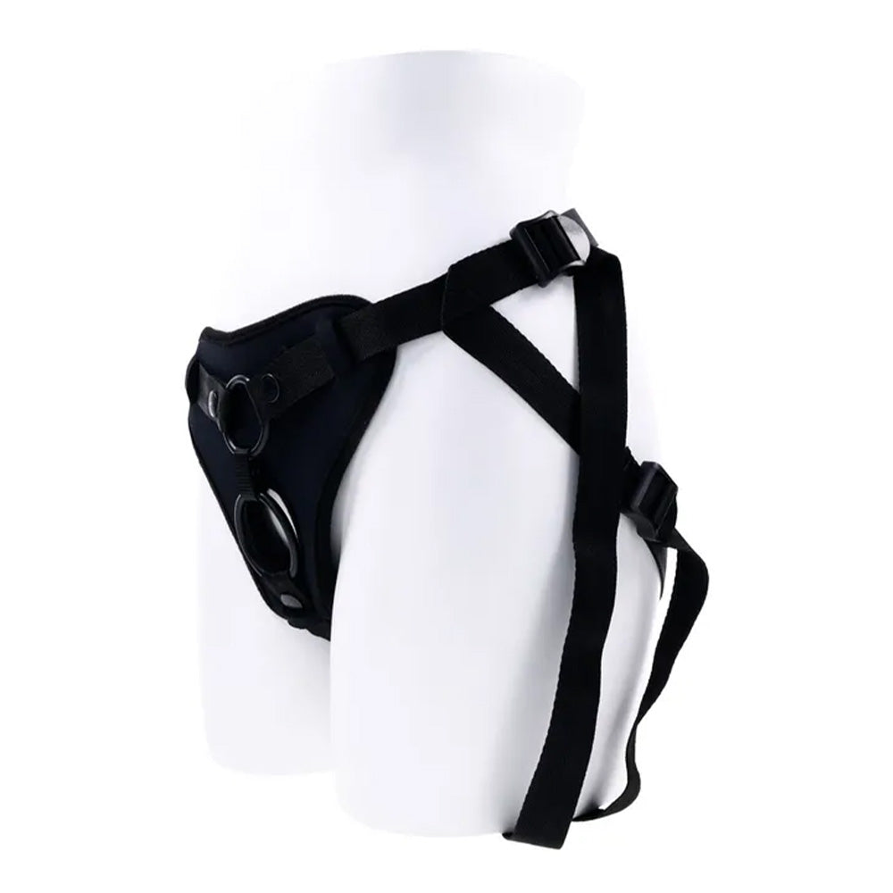 This strap-on harness lets couples independently experience the intense sensations of dual penetration and expand pleasure without the need for a third person with its dual opening design. The top O-ring is compatible with flared-base dildos and can be connected to another O-ring at the lower opening for extra stability. The stitched opening keeps the wearer's penis comfortably snug without friction when in use, and the pair of included interchangeable O-rings can act as cock rings to keep their erection hard or hold a second dildo for gender-neutral DP fun! The front is padded with neoprene for supreme comfort and the harness has 4-way adjustability to accommodate hips up to 60" (152cm) in circumference for a comfortable, custom fit.