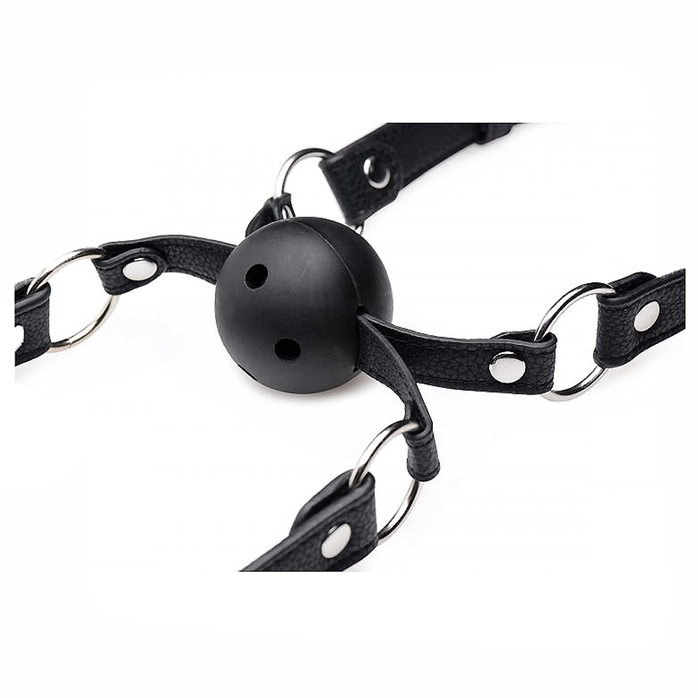 This double-strap gag will let you lock two people face-to-face and silence them both using a single ball gag. It is an extremely intimate and sensual experience as the submissive participants are placed together, lips touching, while sharing the same breathable ball gag between them! Both head straps are adjustable for an individual fit and secured by buckles at the back to keep each person strapped in tightly and unable to escape until you say so...