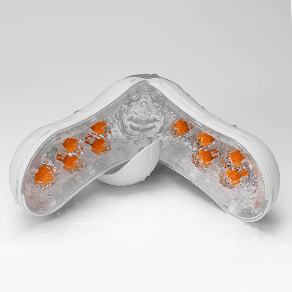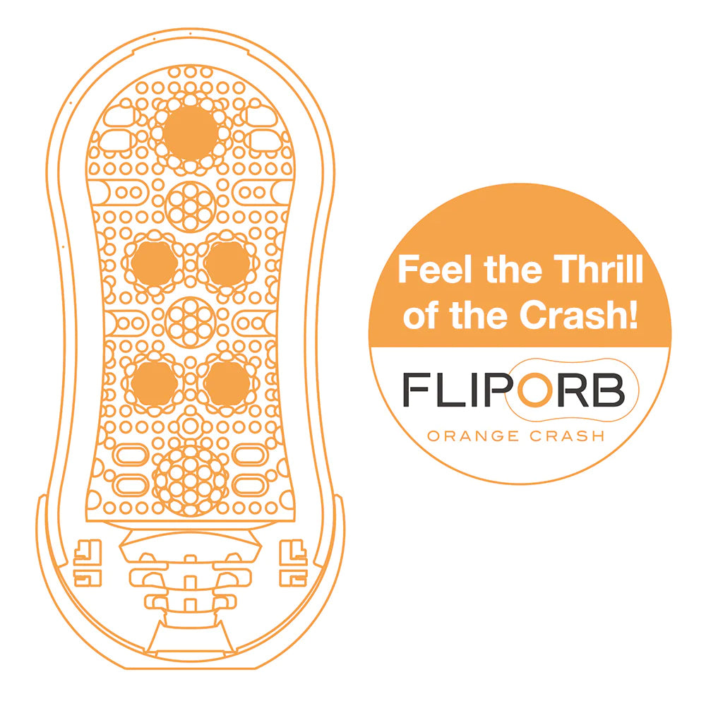 Feel the thrill of pleasure crashing all around you with the Orange Crash Tenga® Flip-Open Orb Masturbator!