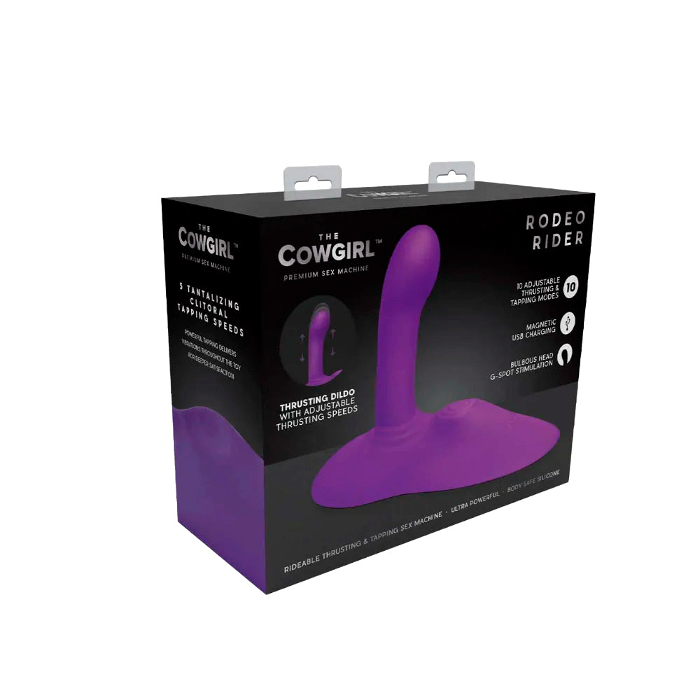 This ultra-compact sex machine is equipped with a thrusting dildo and a clitoral thumping pad that delivers hands-free pleasure in all your favourite positions, and we do mean all of them—the Rodeo Rider weighs less than 400 grams and has a super-strong suction base that adheres to flat, firm surfaces like the floor, furniture, and even walls so you can enjoy yourself in any position for versatile play! The clitoral tapper provides 5 teasing sensations that range from gentle taps to breathtaking bursts while the bulbous G-spot head thrusts against your sweet spot in another 5 modes for deep and filling satisfaction...