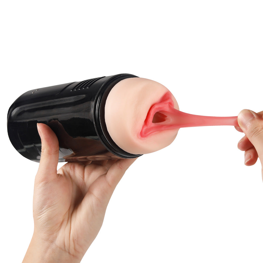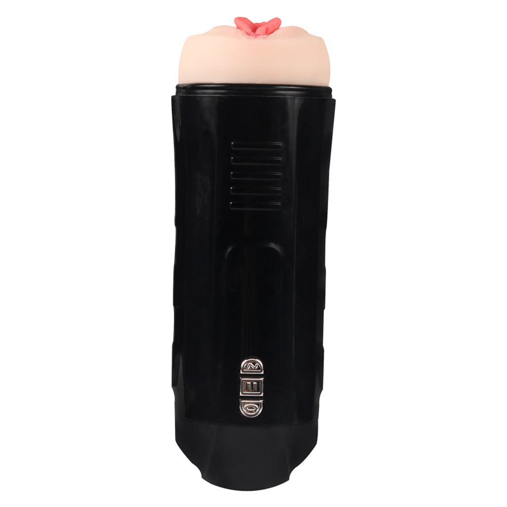 The whole masturbator comes in a discreet, capped hardshell case that sports 3 buttons for intuitive control of your toy during play. A tap of the ~ button lets you cycle through the 10 modes of vibration while the mouth button activates the suction that pulls you in with its vacuum and then pushes you back out. To release the air, hold the pause button, or tap it repeatedly to create an effect that feels like a woman's kegel muscles contracting all around you! A long press of the button/s whichever setting/s you have active will stop that function, and once all the settings are turned off, the whole toy will shut itself down for a convenient wrap-up.
