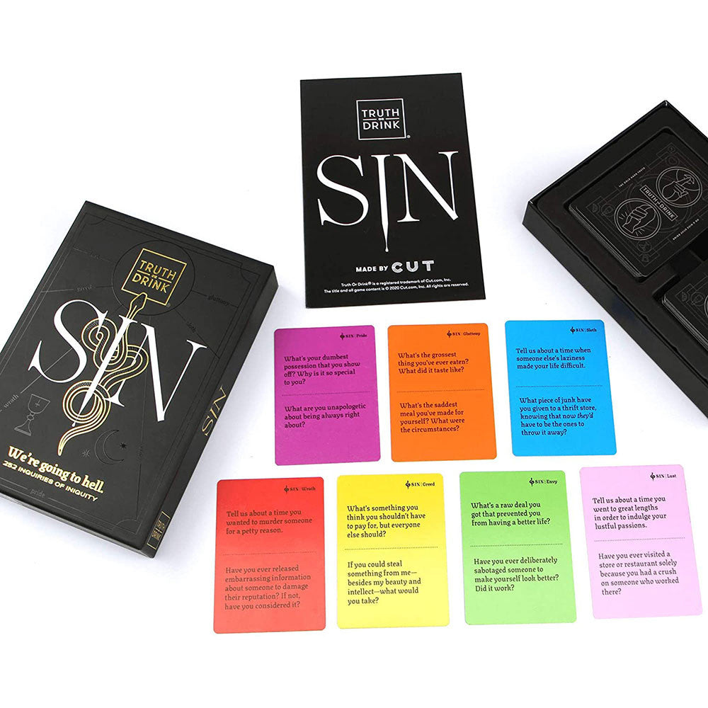 Skip the small talk and get right into the juicy stuff with the Sin Expansion Pack of the Truth or Drink® Card Game by Cut!