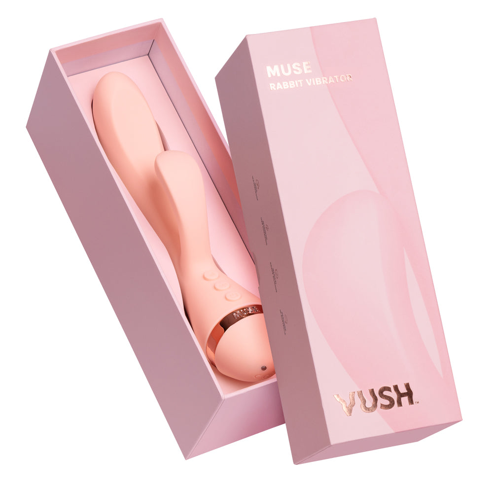 Celebrate yourself and be your own muse with the Vush Muse Come-Hither G-Spot Stroking Rabbit Vibrator!