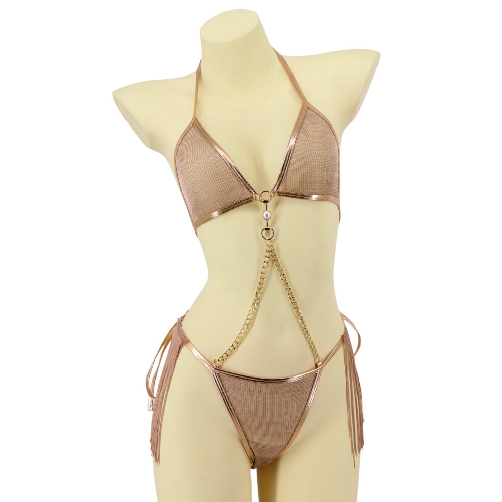 Key features of the Western Fashion Metallic Mesh Chain Link Fringe Bikini: