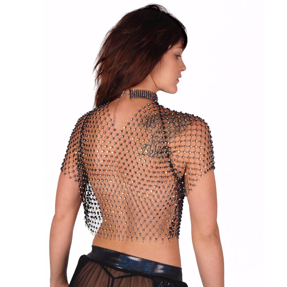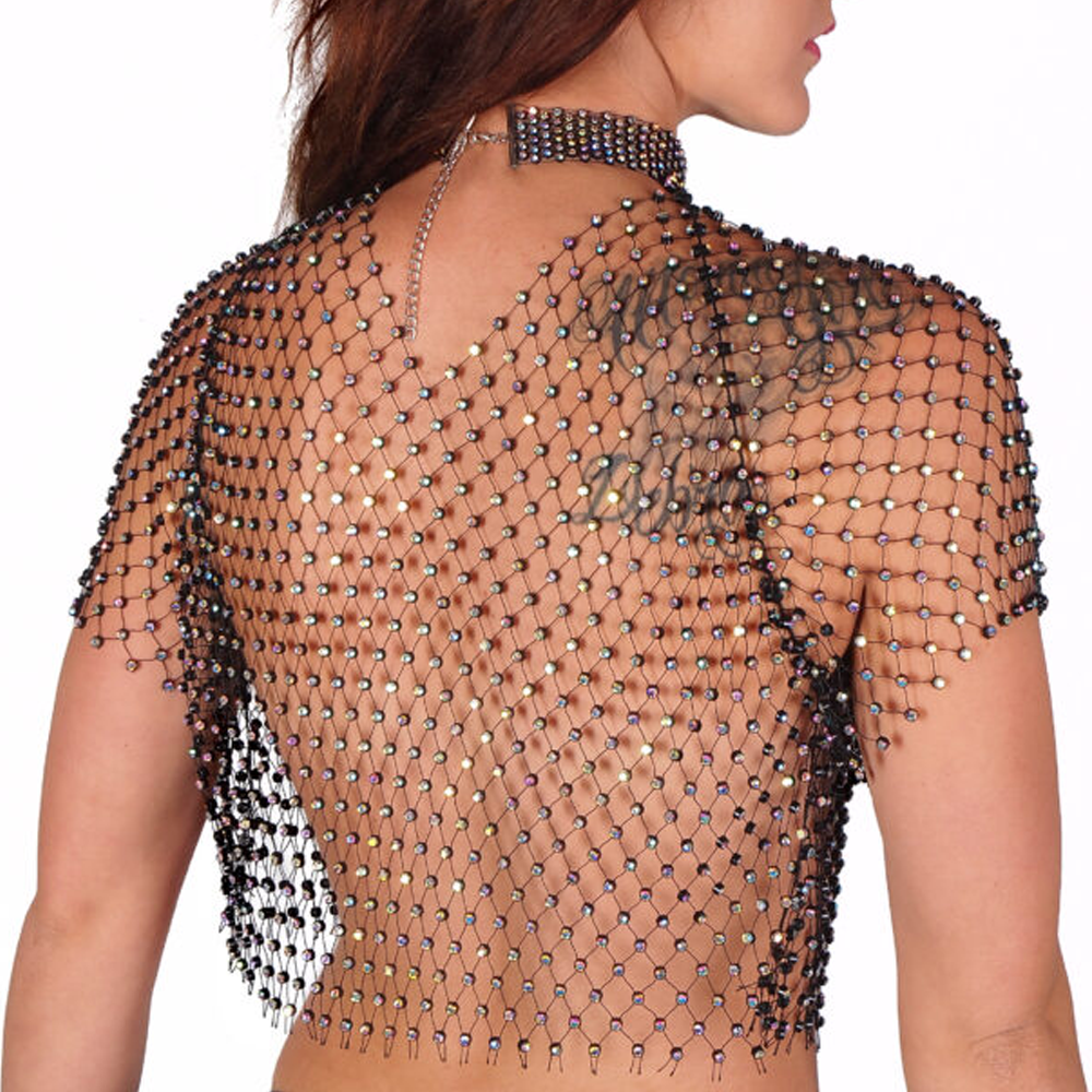 This eye-catching shirt is the perfect piece to wear on its own or over party outfits, seductive lingerie, and nipple pasties (sold separately) to entice onlookers into a worthwhile double take! The open-weave design lets your skin peek through the open net and is studded with hundreds of diamante crystals to sparkle all over your torso. Wear it to nightclubs, parties, summer festivals, and more and prepare to turn heads all day and all night long!