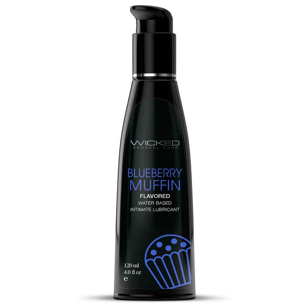 Prepare to lick and be licked by your lover all over with the kissably delicious Wicked® Aqua Blueberry Muffin Flavoured Water-Based Lubricant!