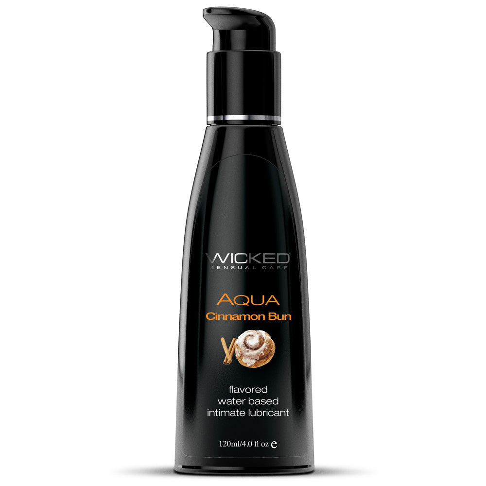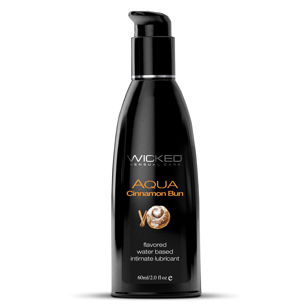 Prepare to lick and be licked by your lover all over with the kissably delicious Wicked® Aqua Cinnamon Bun Flavoured Water-Based Lubricant!