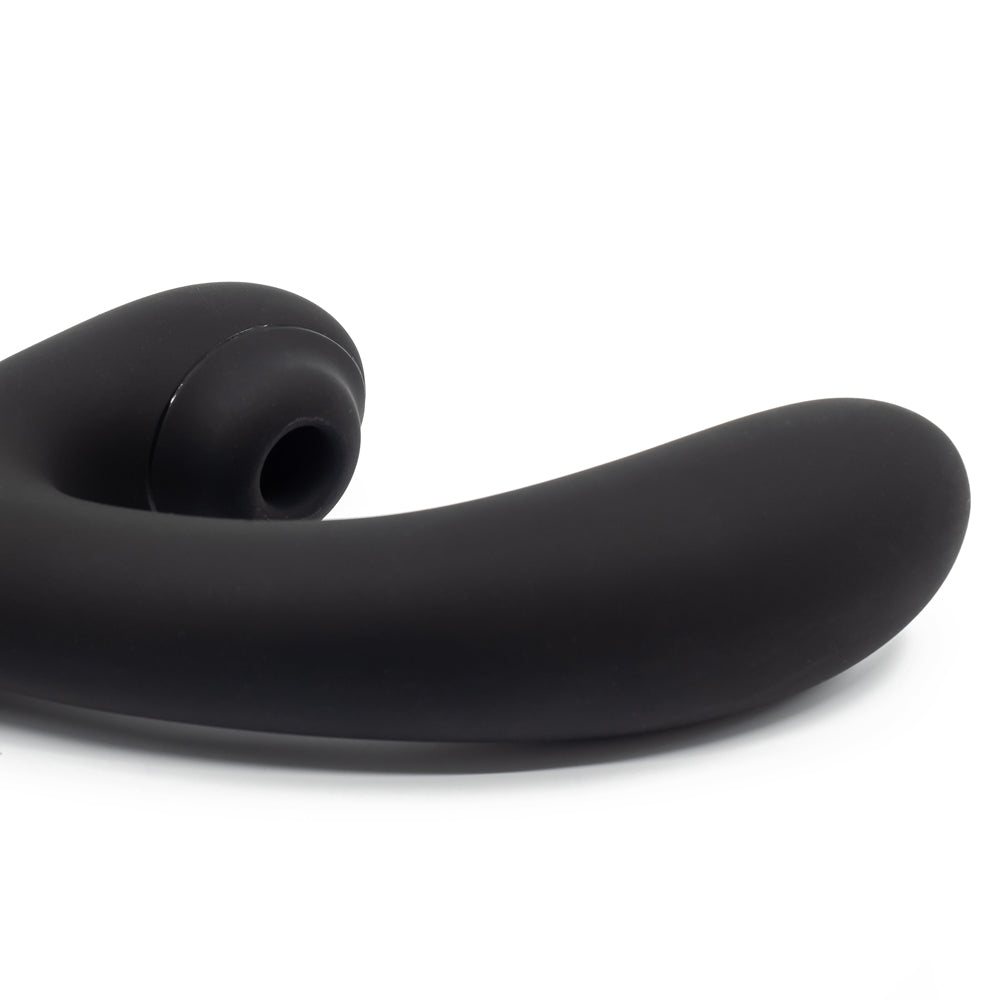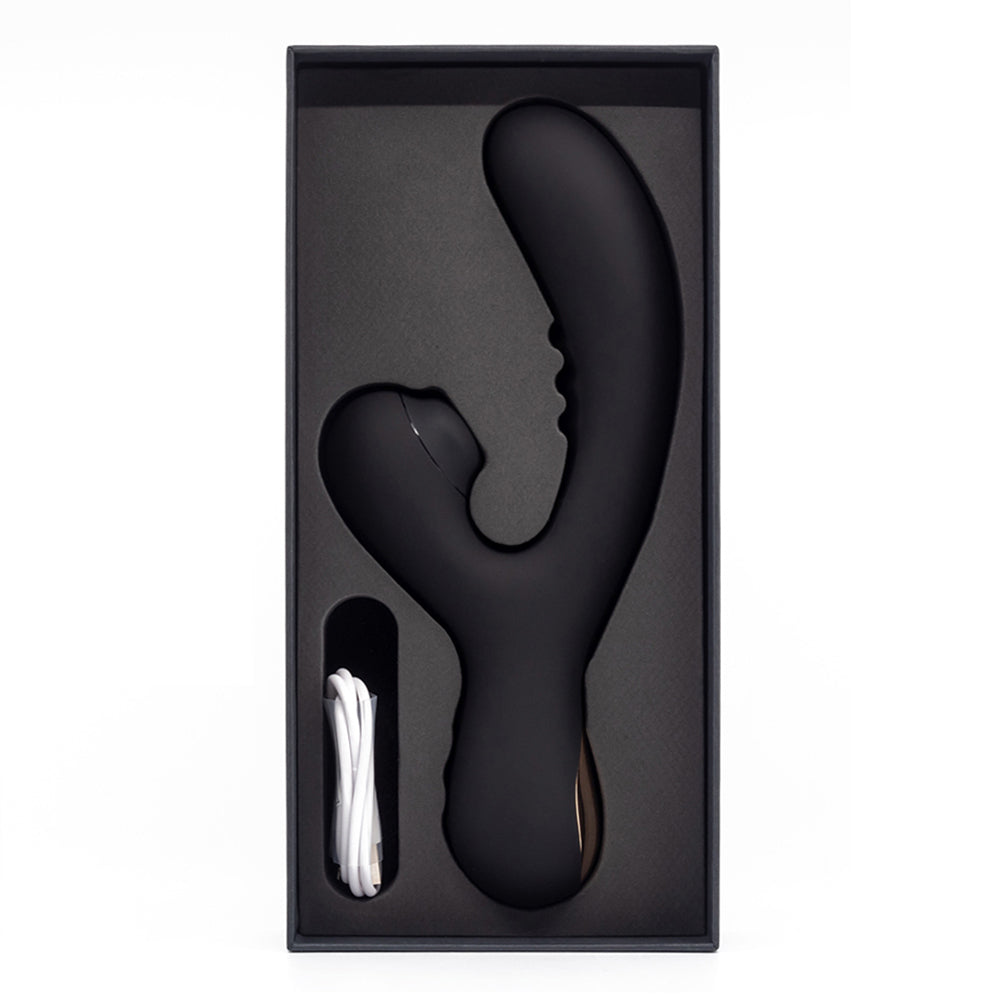 This ergonomic rabbit vibe is blessed with independent dual motors for endless pleasure inside and out. The ridged texture by the base of the G-spot head adds extra stimulation as the curved head buzzes against your inner walls in 10 modes of whisper-quiet vibration that'll turn your knees to jelly. Meanwhile, the clitoral sucker will blow you away with 8 suction intensities at the touch of a button to create a custom climax experience you'll never forget...
