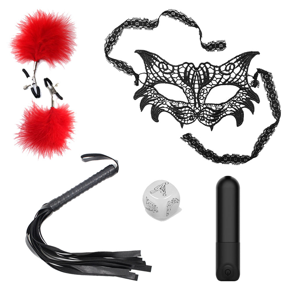 This all-in-one fetish kit is perfect for BDSM beginners who are interested in exploring bondage, shibari, sensation play, and discipline. It comes with a rechargeable 10-mode bullet vibrator and a gentle faux leather flogger to dish out pleasure and pain as you see fit. Your lover will be helpless to resist your desires as they lie bound in the cotton rope, or strapped down to the mattress with the under-the-bed restraints and four Velcro cuffs wrapped around their wrists and ankles! Attach the fluffy nipple clamps to deliver a delicious pinch that pairs well with the gentle tickling sensations, and slip a breathable ball gag between their lips to muffle their moans while still letting them breathe with ease. Ensure you look the part in a lace masquerade mask and matching crotchless panties for easy access to your intimate assets (or your playmate's), and mix up your position play with the love die for more spontaneity! Top it all off with a mystery gift that will help you and your partner go harder for longer, as well as intensify the lucky wearer's orgasm, and you're in for a truly wild night...