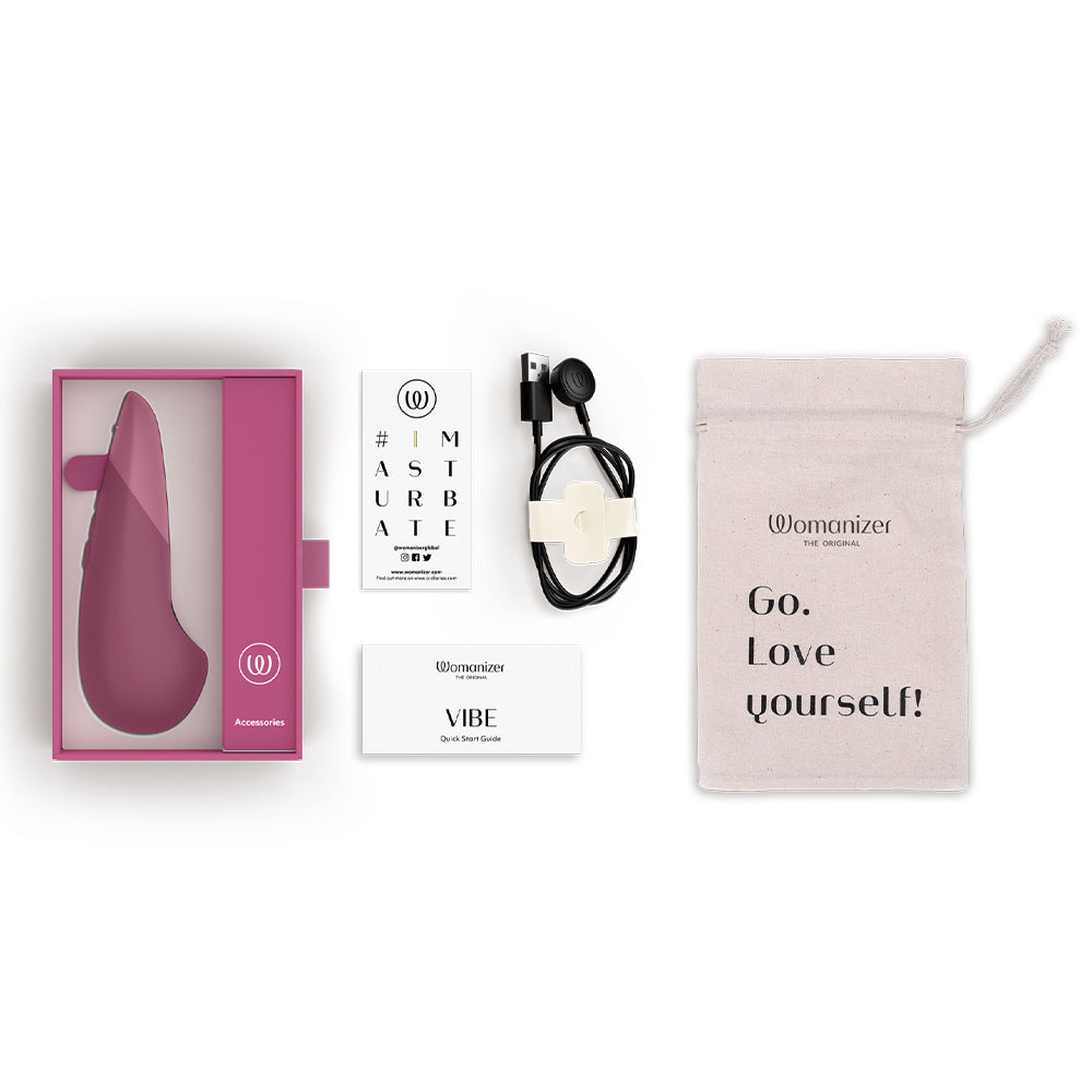 What's included with the Womanizer Vibe Silent UltraWave Clitoral Lay-On Vibrator: